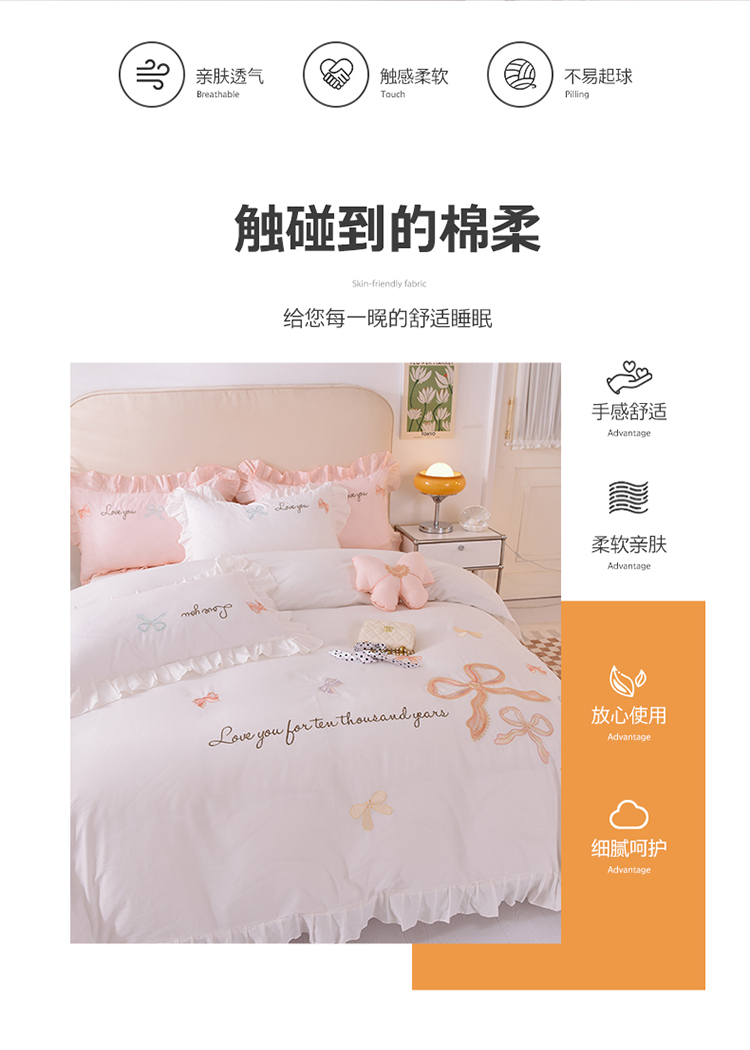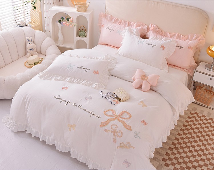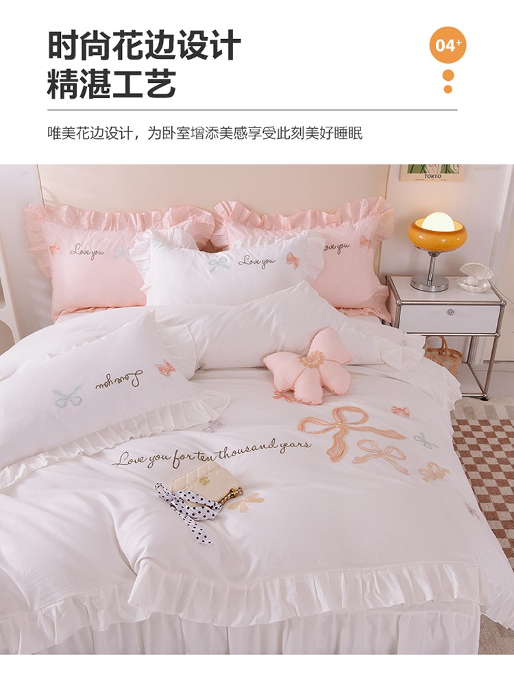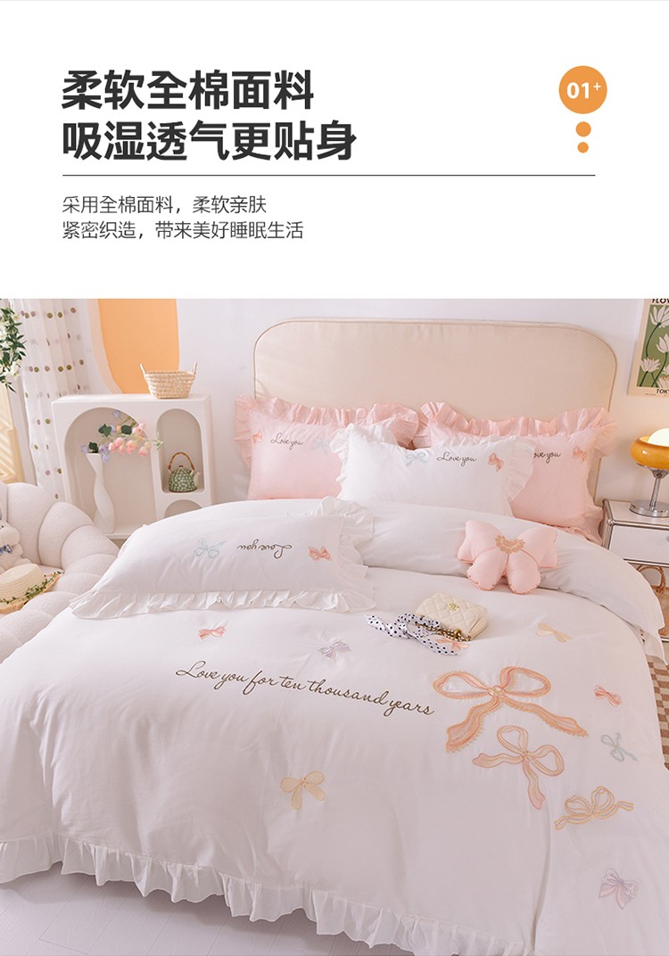 (总)迪欧芙 2024春季纯棉13372公主风四件套刺绣花边四件套爱的结语系列,爱的结语-白,爱的结语-粉,爱的结语-蓝