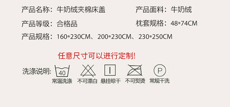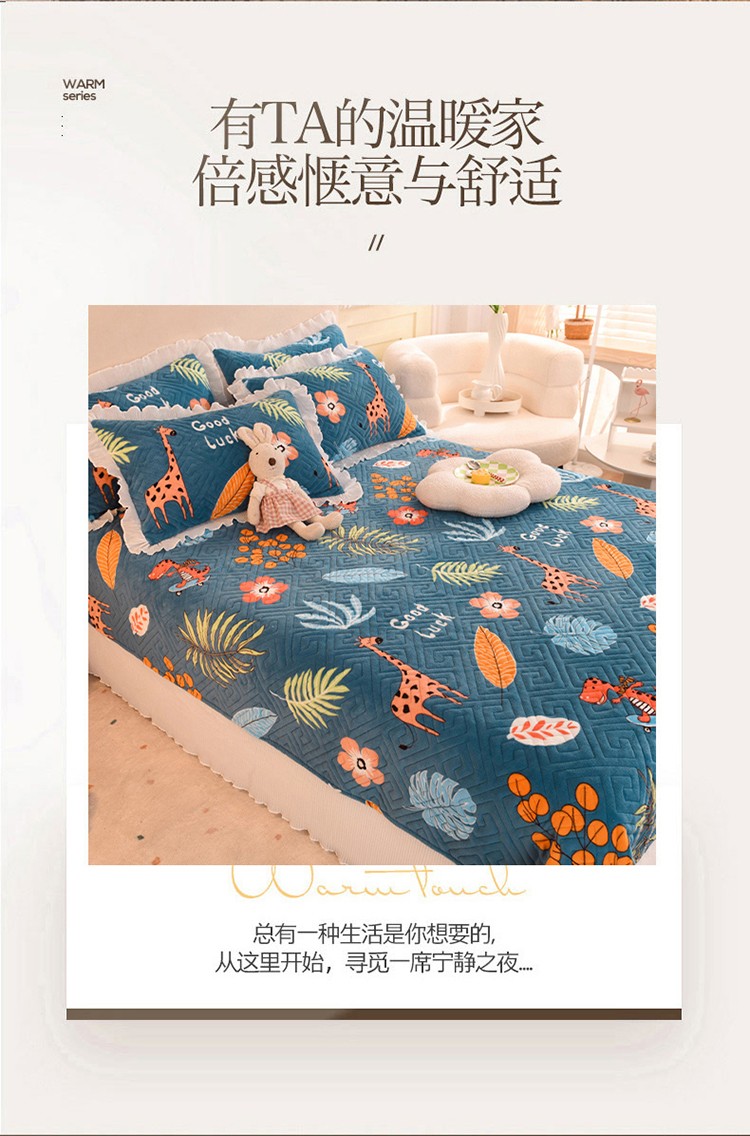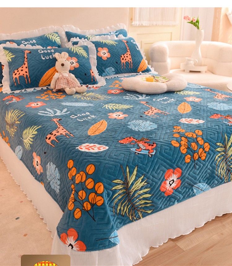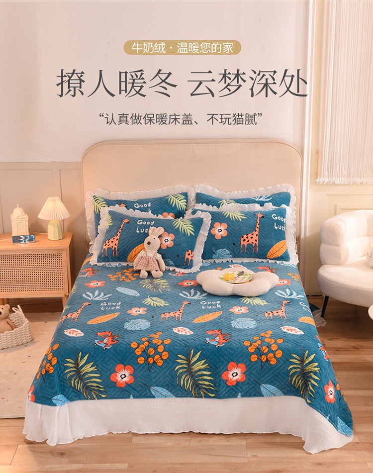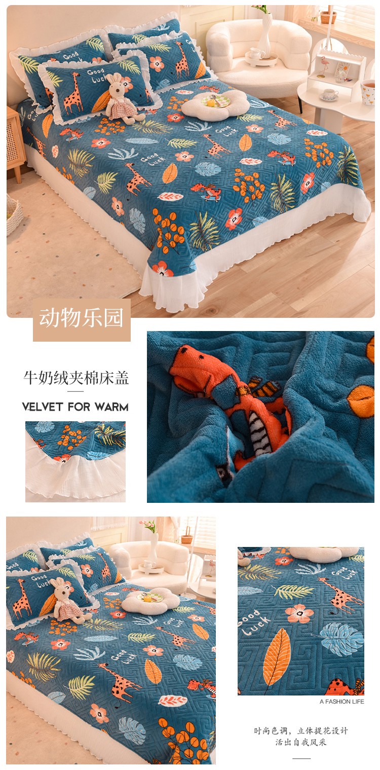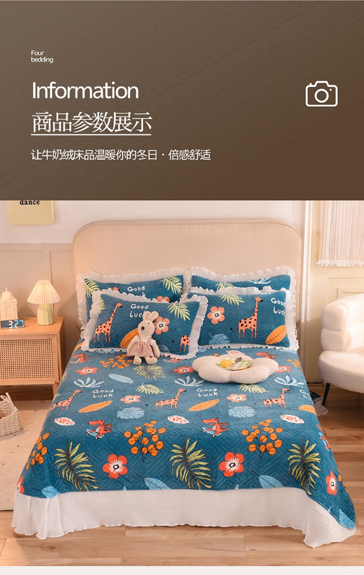 商品名称:(总)2025新款牛奶绒印花夹棉花边 单品床盖可定制任何尺寸