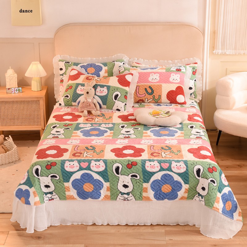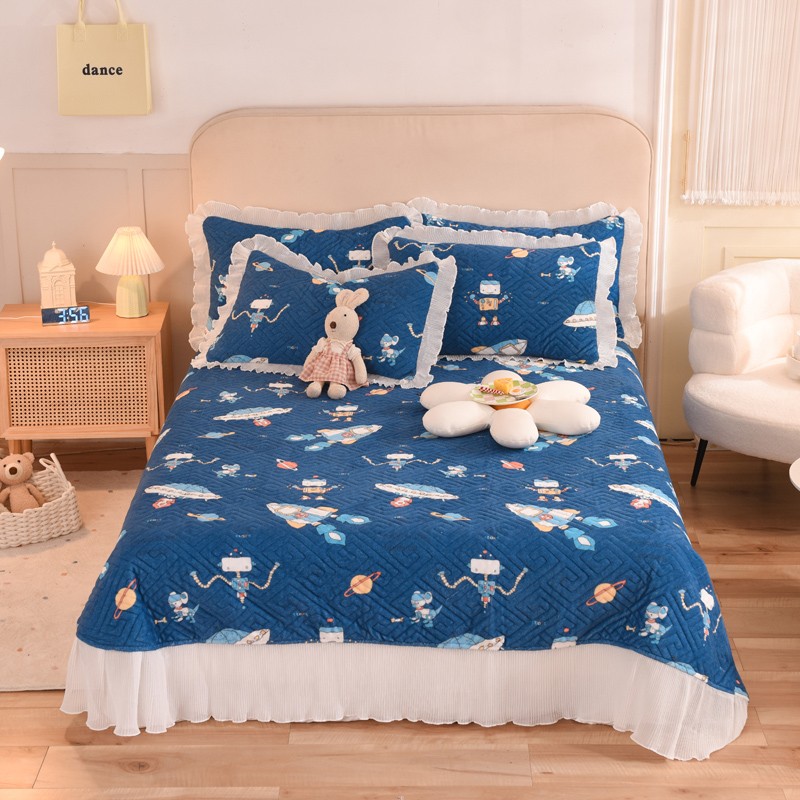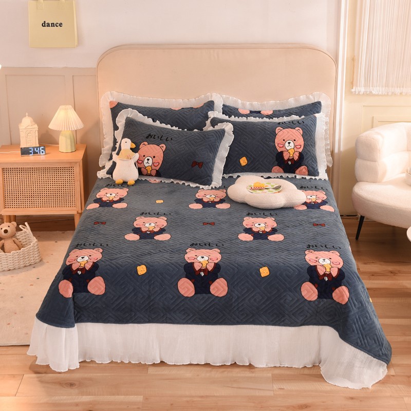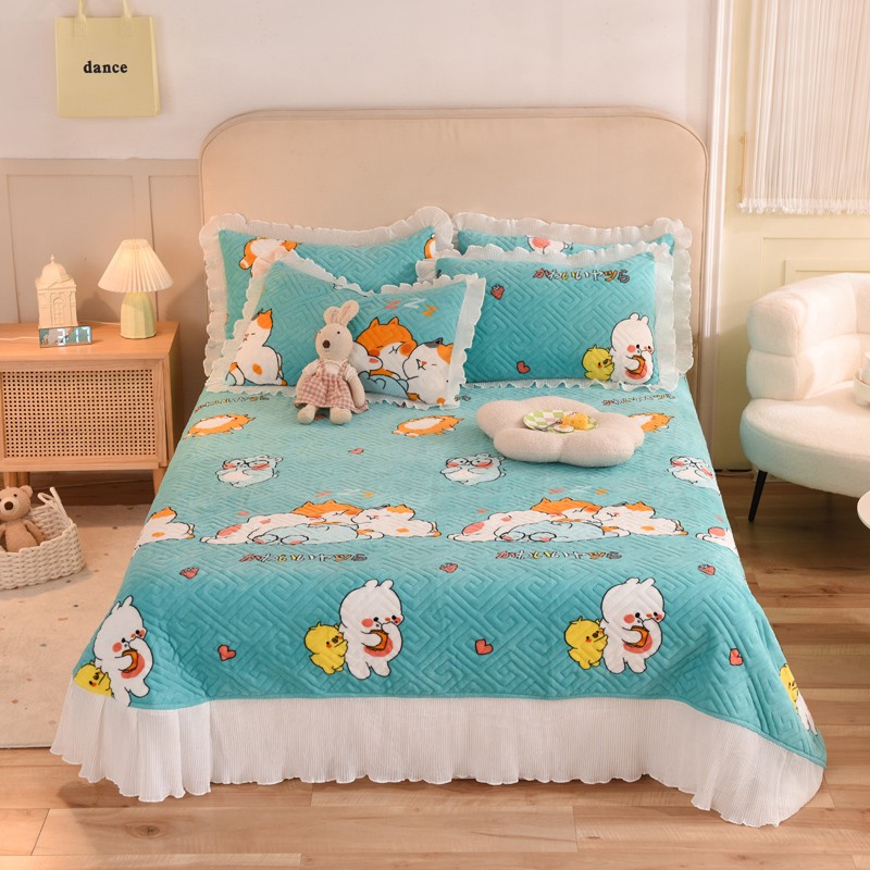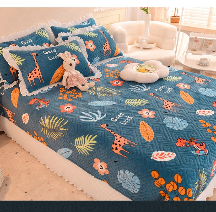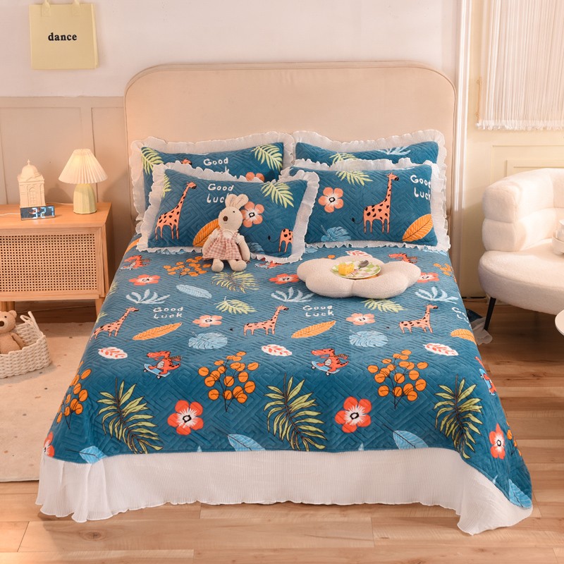 (总)2025新款牛奶绒印花夹棉花边 单品床盖可定制任何尺寸