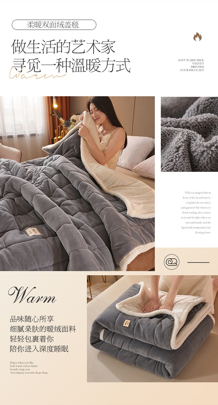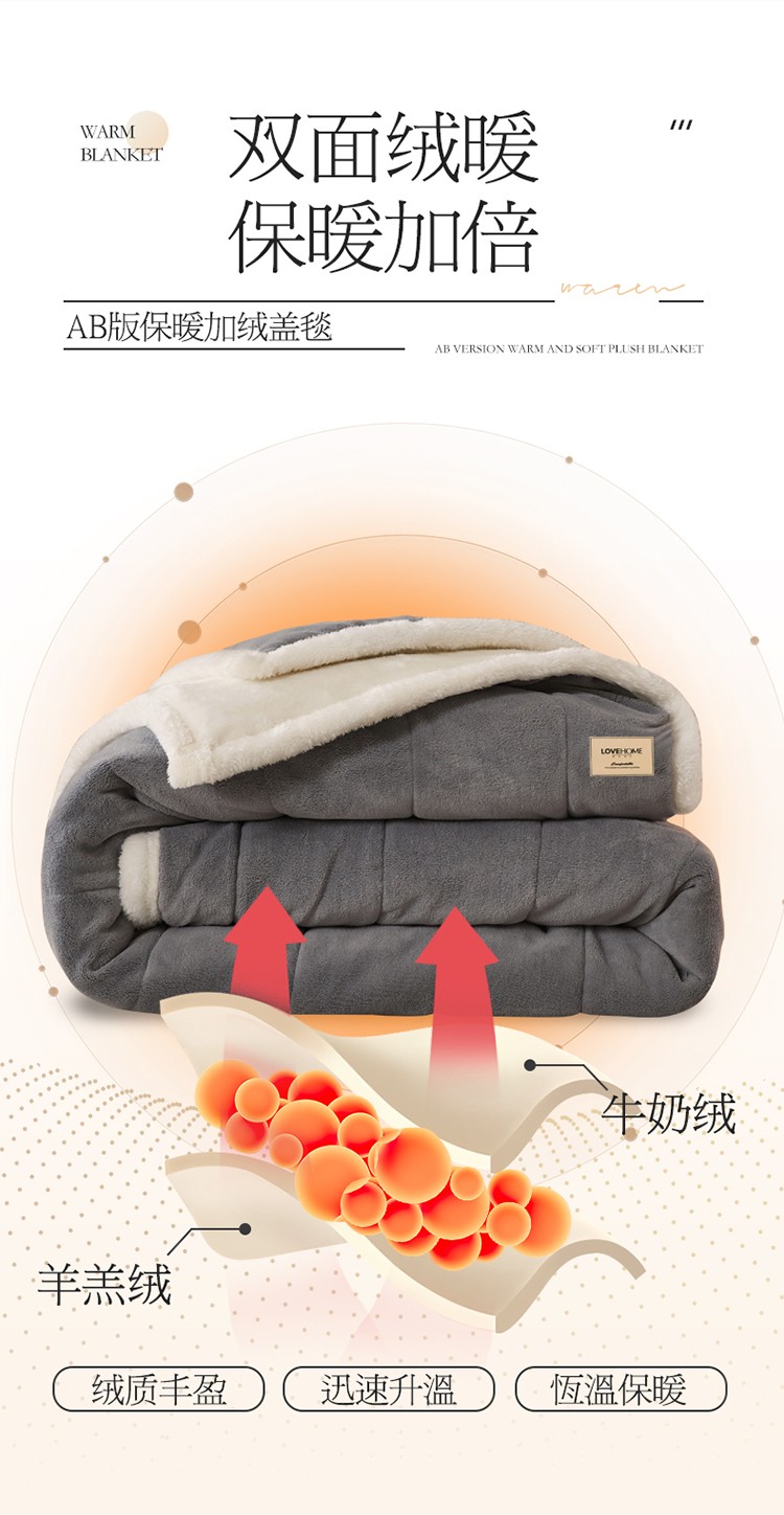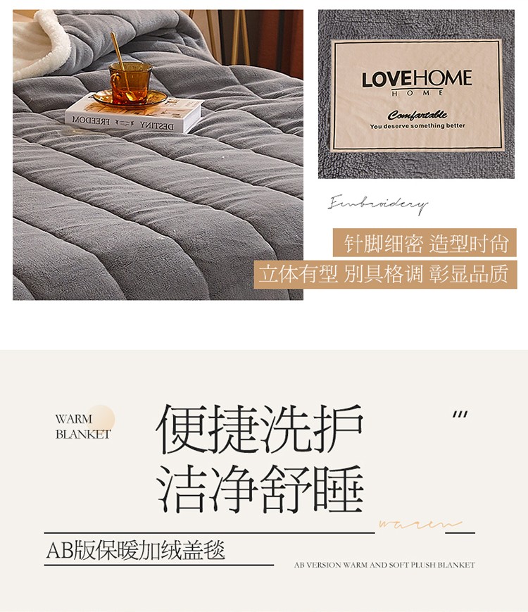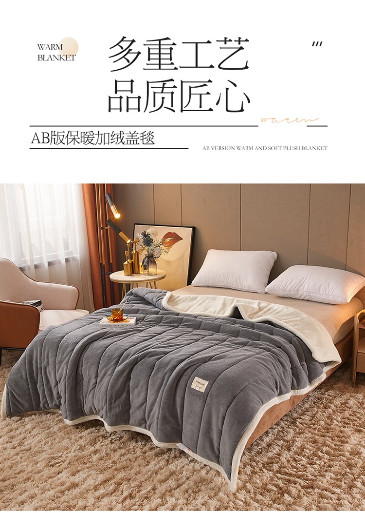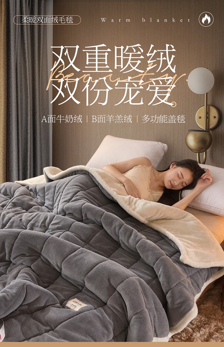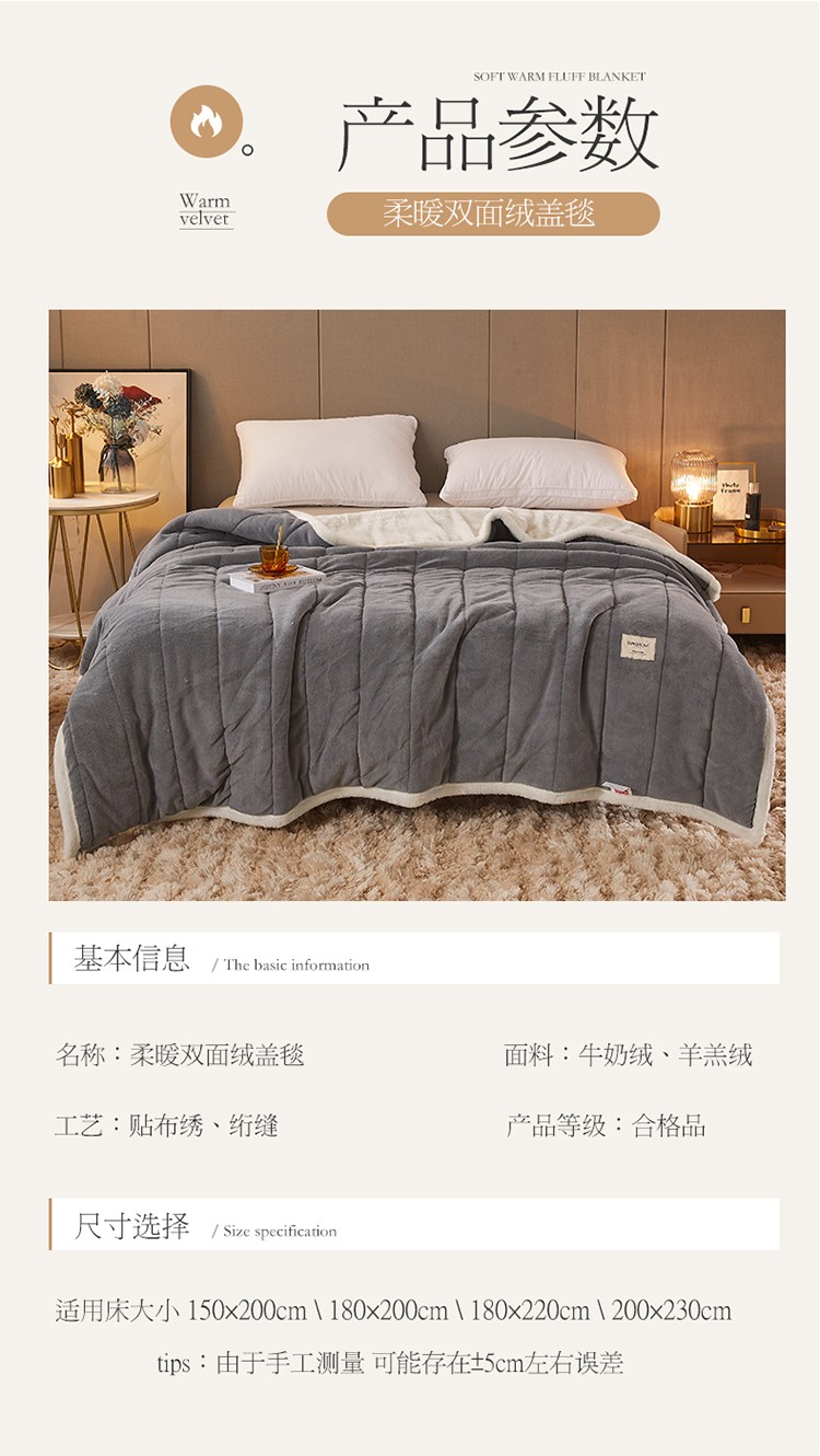 商品名称:湘之帛日产一万套2024直播电商爆款双面绒复合毛毯毯子牛奶绒 深灰