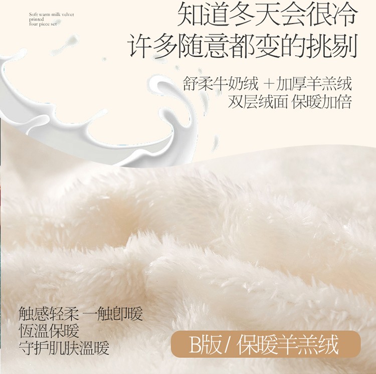 (总)湘之帛 2024新款高克重舒适牛奶绒三件套床笠,繁花似锦,格子小熊,可爱小熊,快乐萌狗,恋爱物语,甜心兔兔