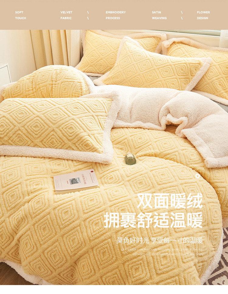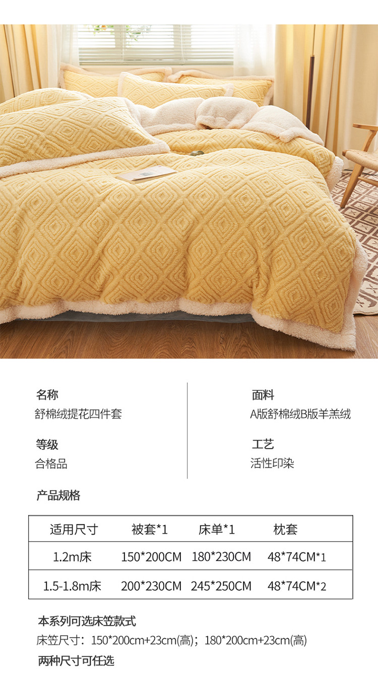 当前位置: 91家纺网 > 商品网购 > 床品套件 > 四件套 > 提花四件套 > 吾秀家居2022新款舒棉绒提花四件套 回格黄