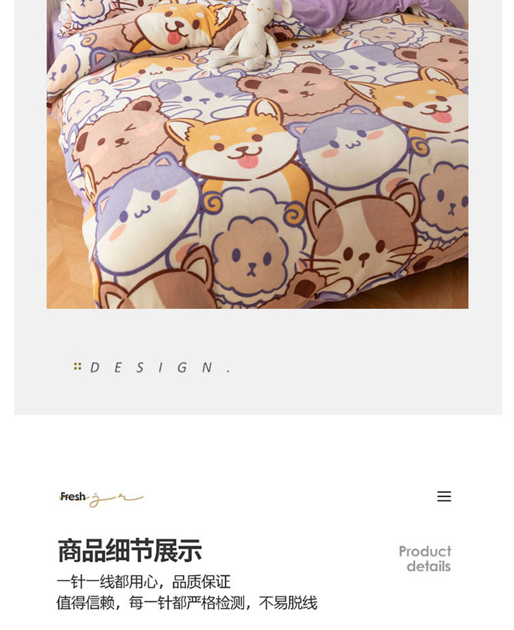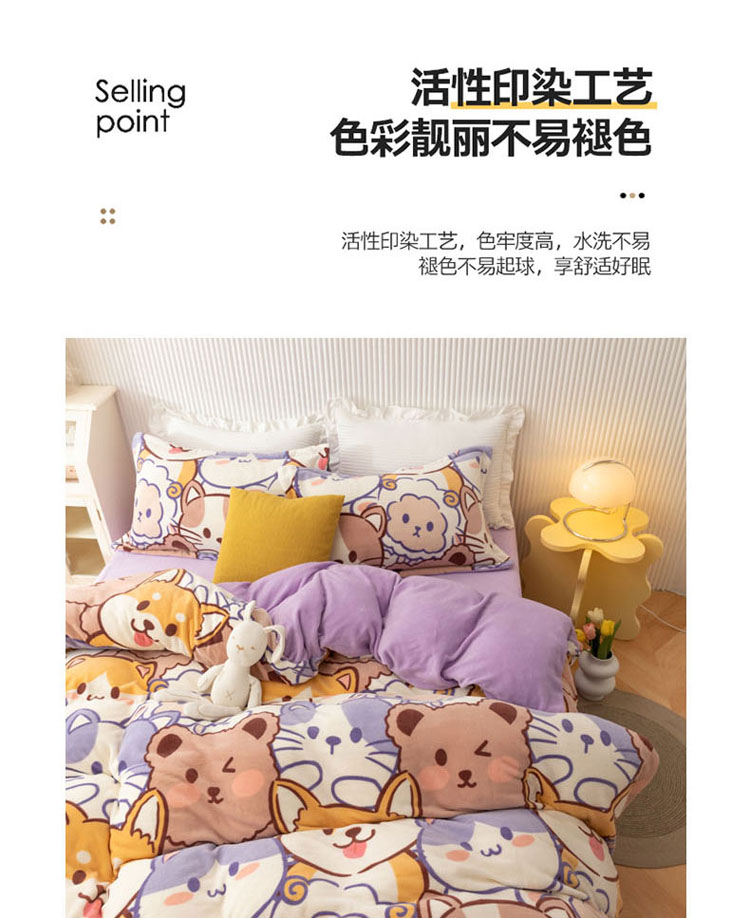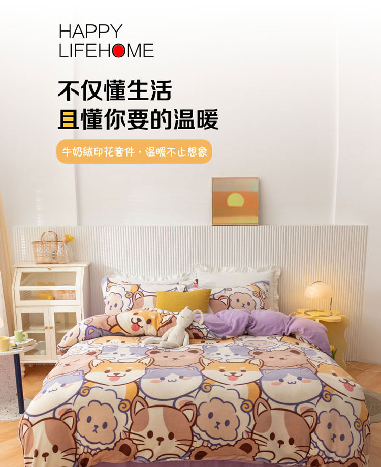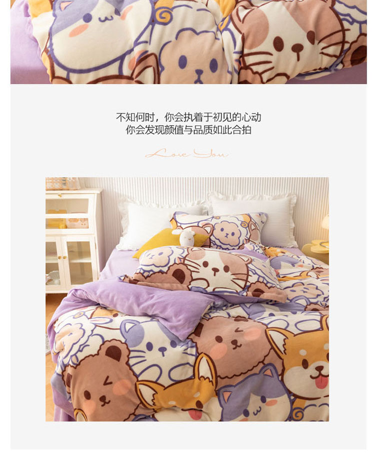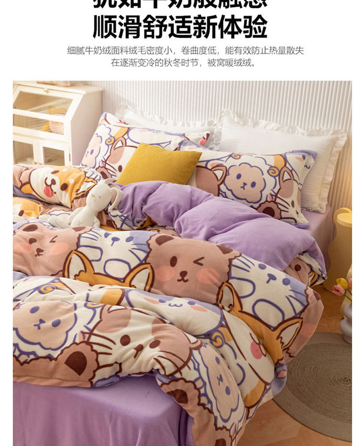 当前位置: 91家纺网 > 商品网购 > 床品套件 > 四件套 > 牛奶绒四件套 > 梦家居 2022新款秋冬牛奶绒四件套 动物园