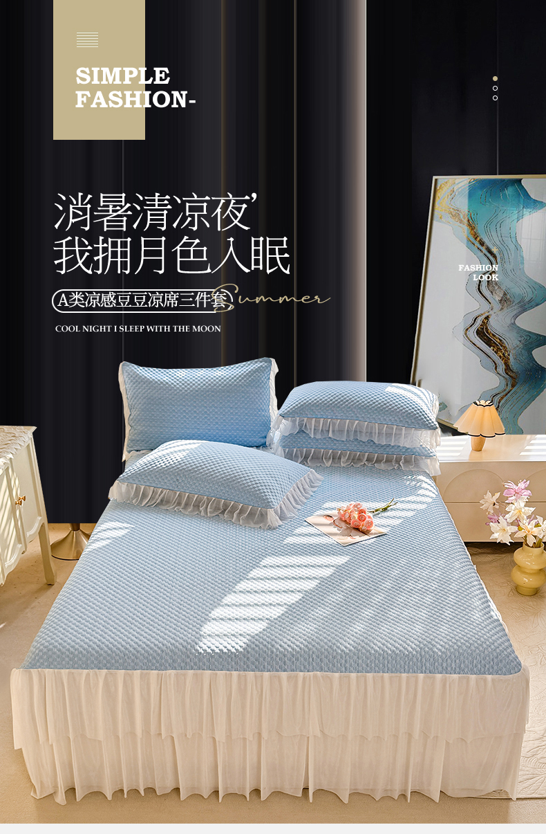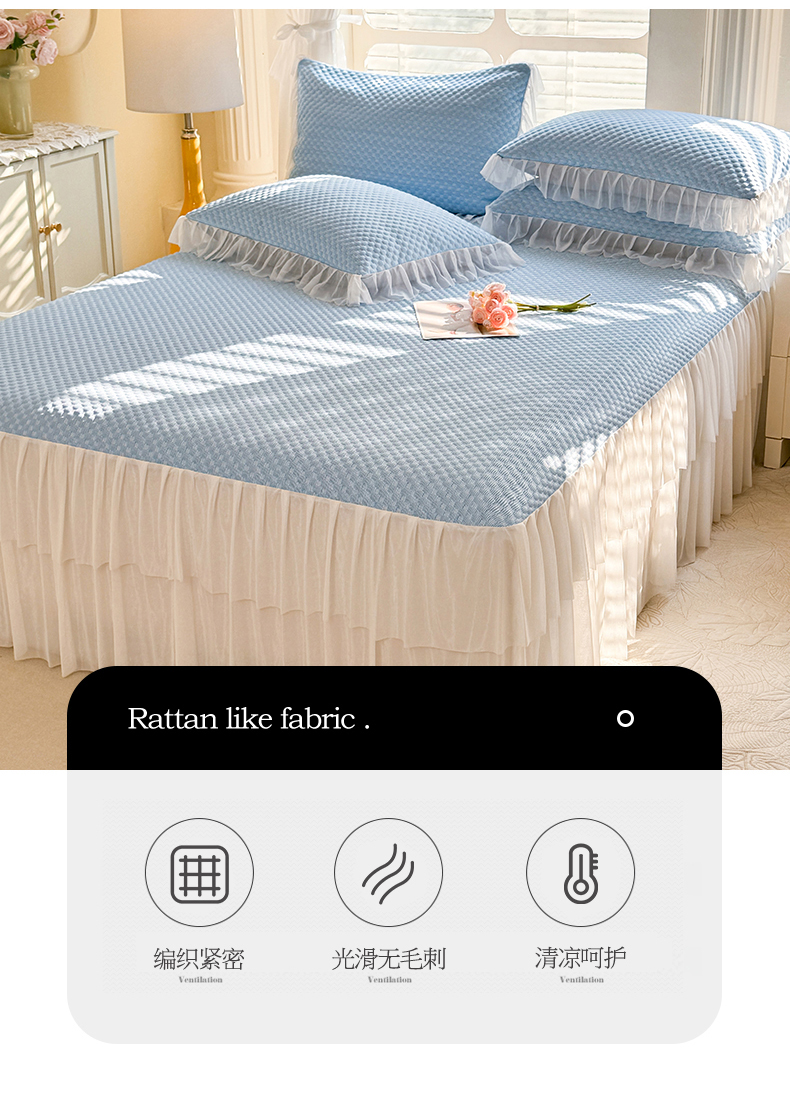 商品名称:(总)优贝 2025爆款凉感冰豆豆凉席三件套床裙款