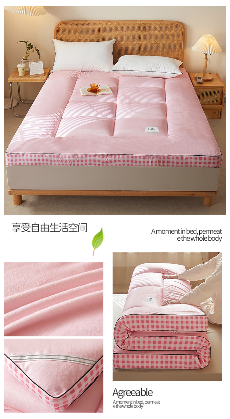 商品名称:迪乐妮 2023新款水洗棉成人立体软床垫 粉格边-粉色