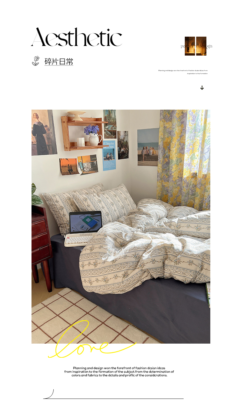 六巷胡同 2023新款韩国ins复古博主风小碎花四件套 但丁花园