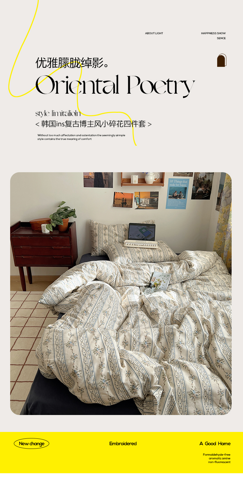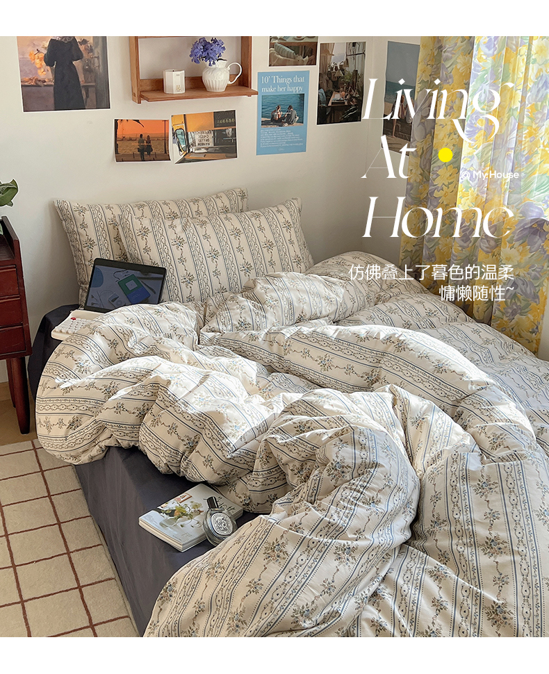 商品名称:六巷胡同 2023新款韩国ins复古博主风小碎花四件套 但丁花园