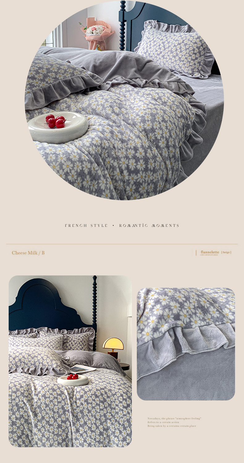 春光里-2023新款高克重花边款直播热卖牛奶绒四件套 小雏菊-灰
