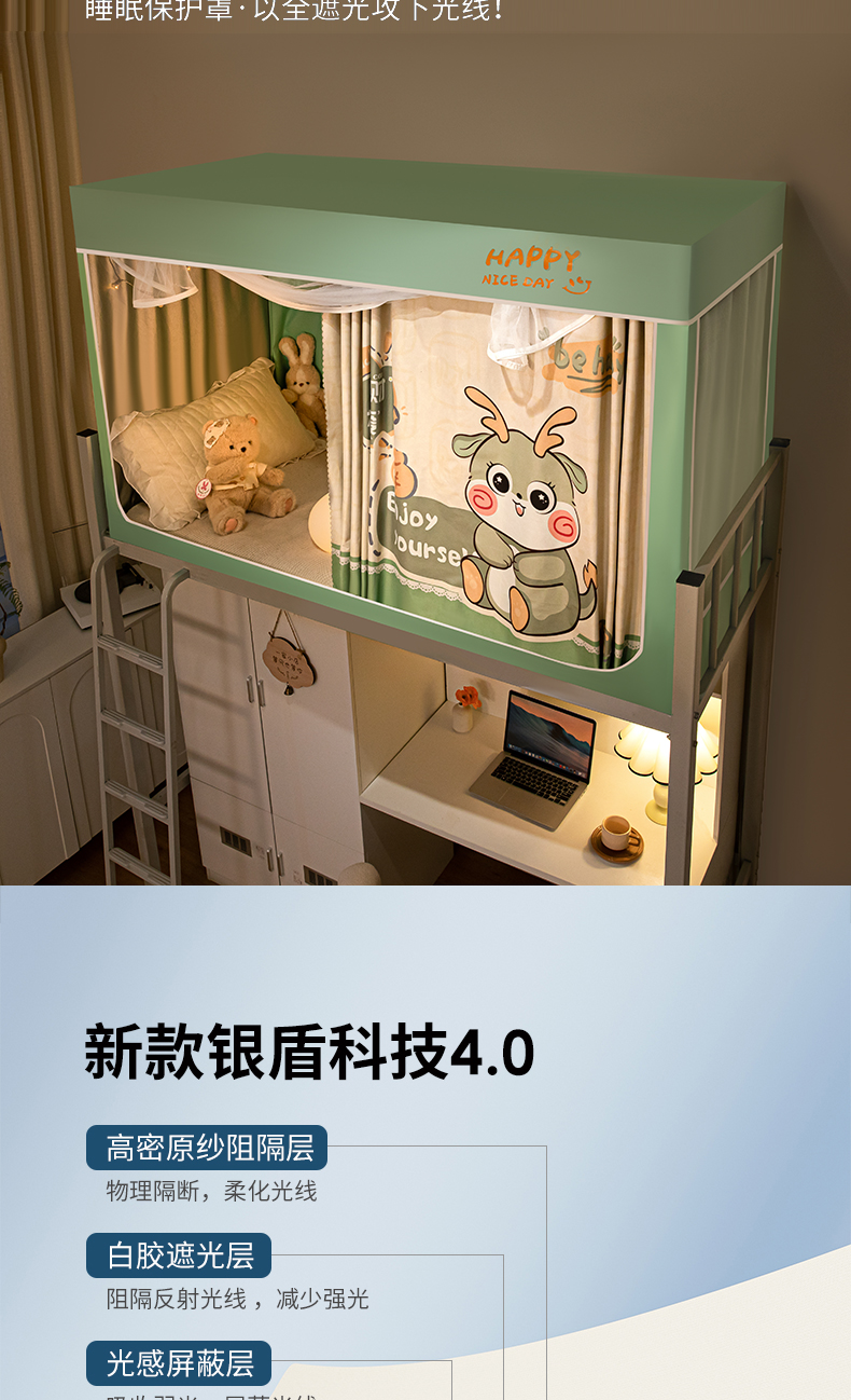 当前位置: 91家纺网 > 商品网购 > 床上用品 > 蚊帐 > 学生蚊帐 > 澳萝拉 2024涂银99%遮光学生蚊帐 可爱龙人