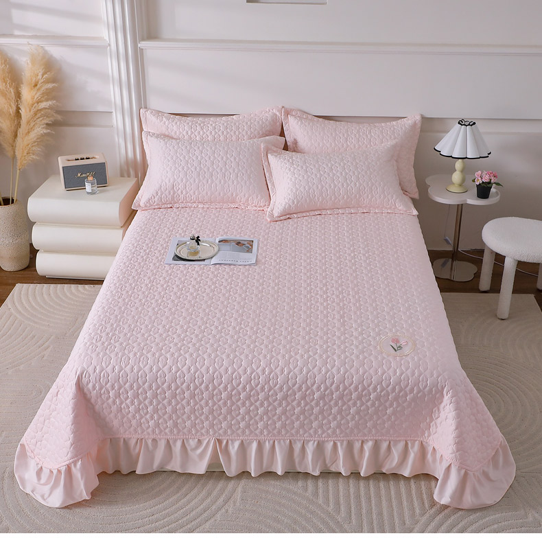 佳梦家纺 佳梦家纺 2024新款花边天丝床盖三件套 冰雪绸天丝-浅玉色