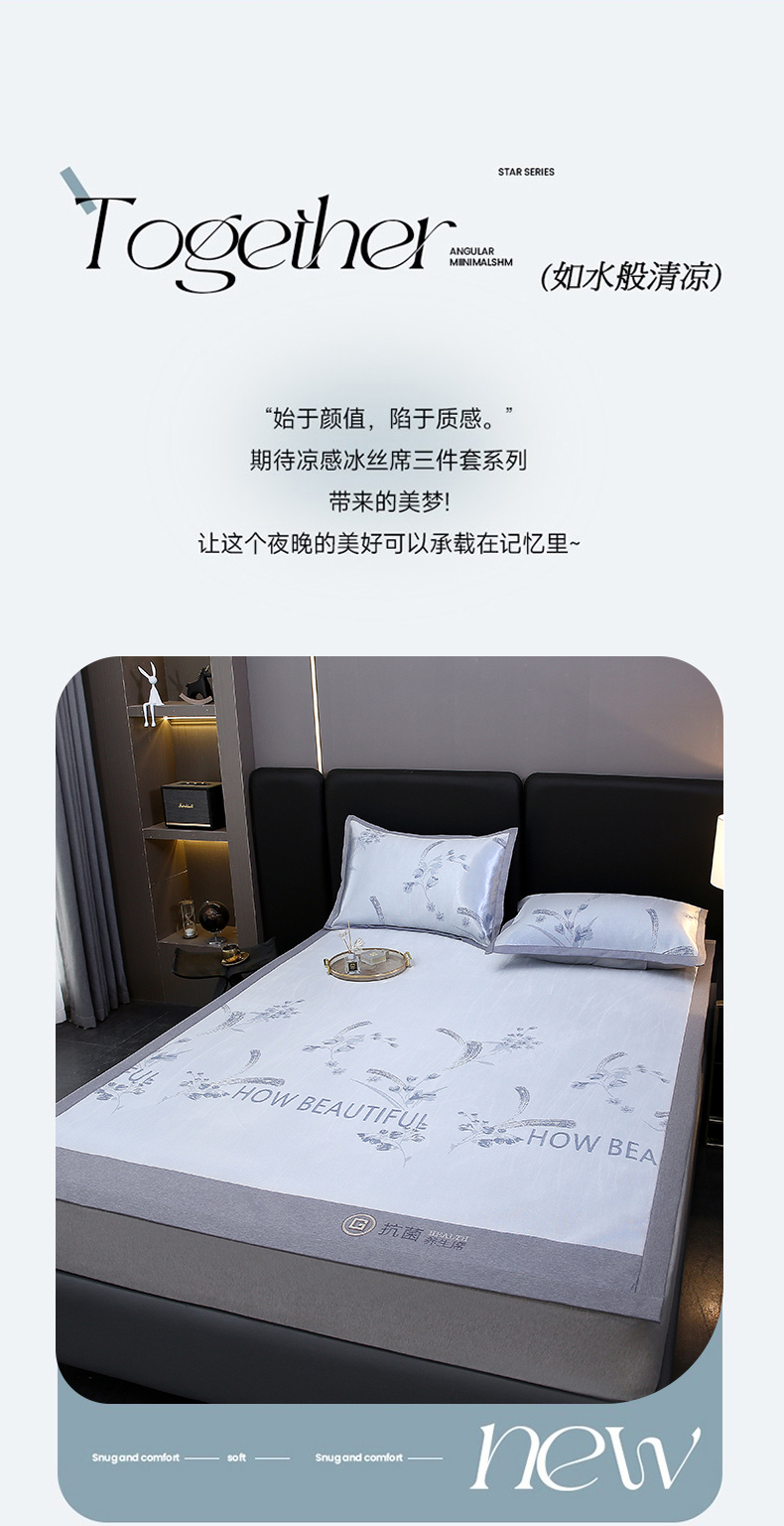 青雅 2025新款抗菌粗冰丝席 冰丝-蓝