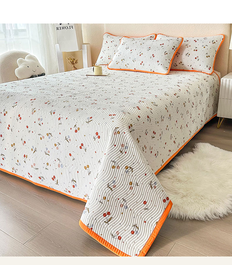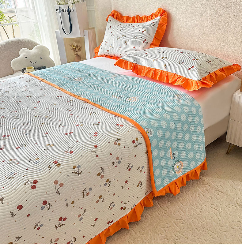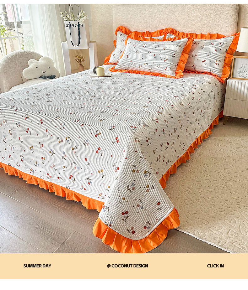 恋绒家纺 2025新款全棉床盖纯棉夹棉床盖花边款直角款(可定做) 果香四季