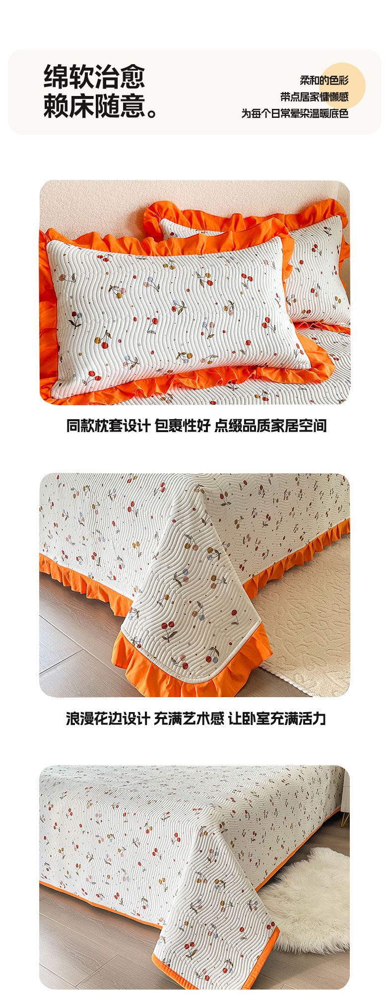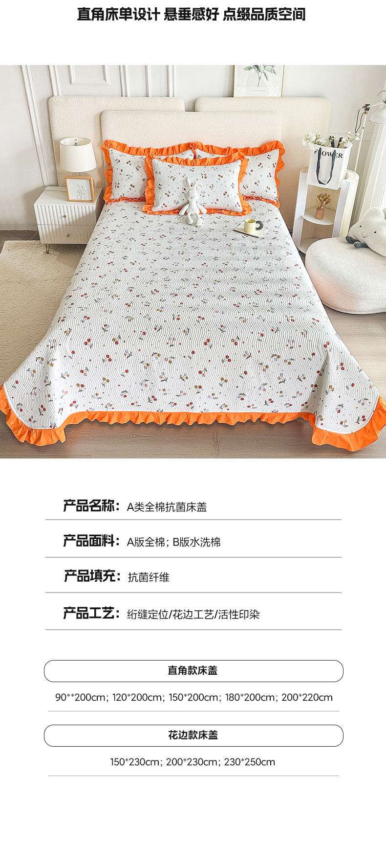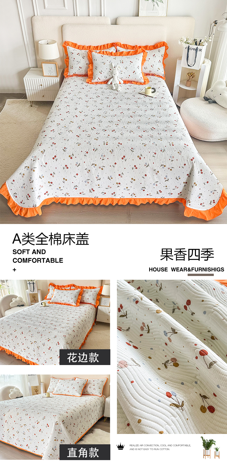 • 91家纺网 家纺一手货源 找家纺 恋绒家纺 2025新款全棉床盖纯棉夹棉床盖花边款直角款(可定做) 果香四季