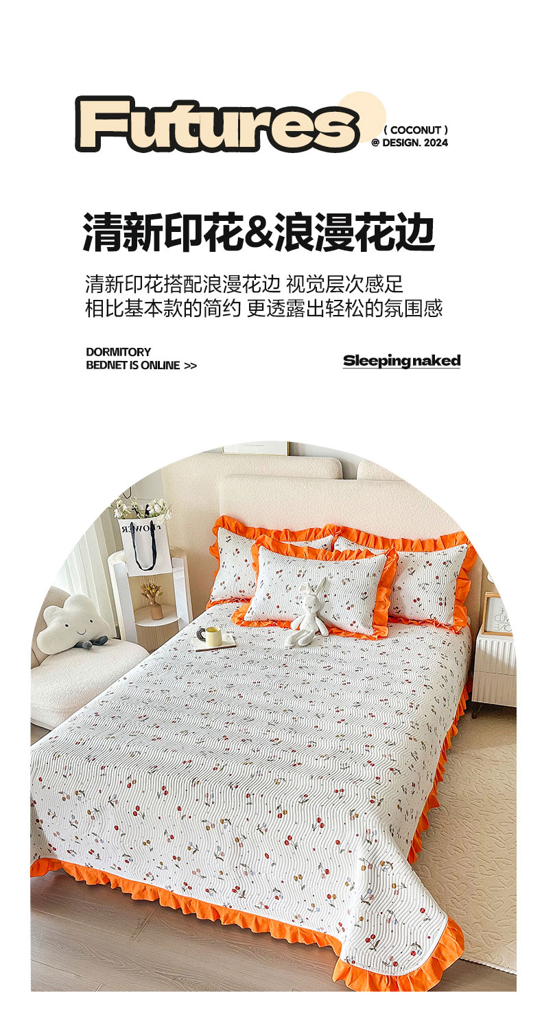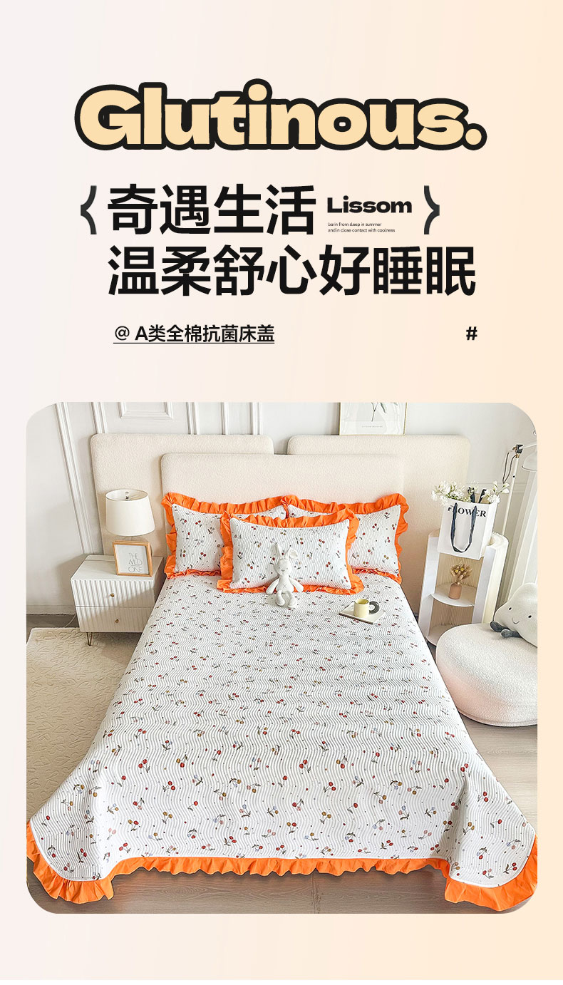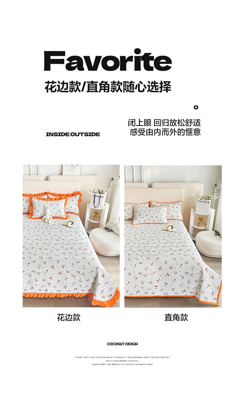 • 91家纺网 家纺一手货源 找家纺 恋绒家纺 2025新款全棉床盖纯棉夹棉床盖花边款直角款(可定做) 果香四季