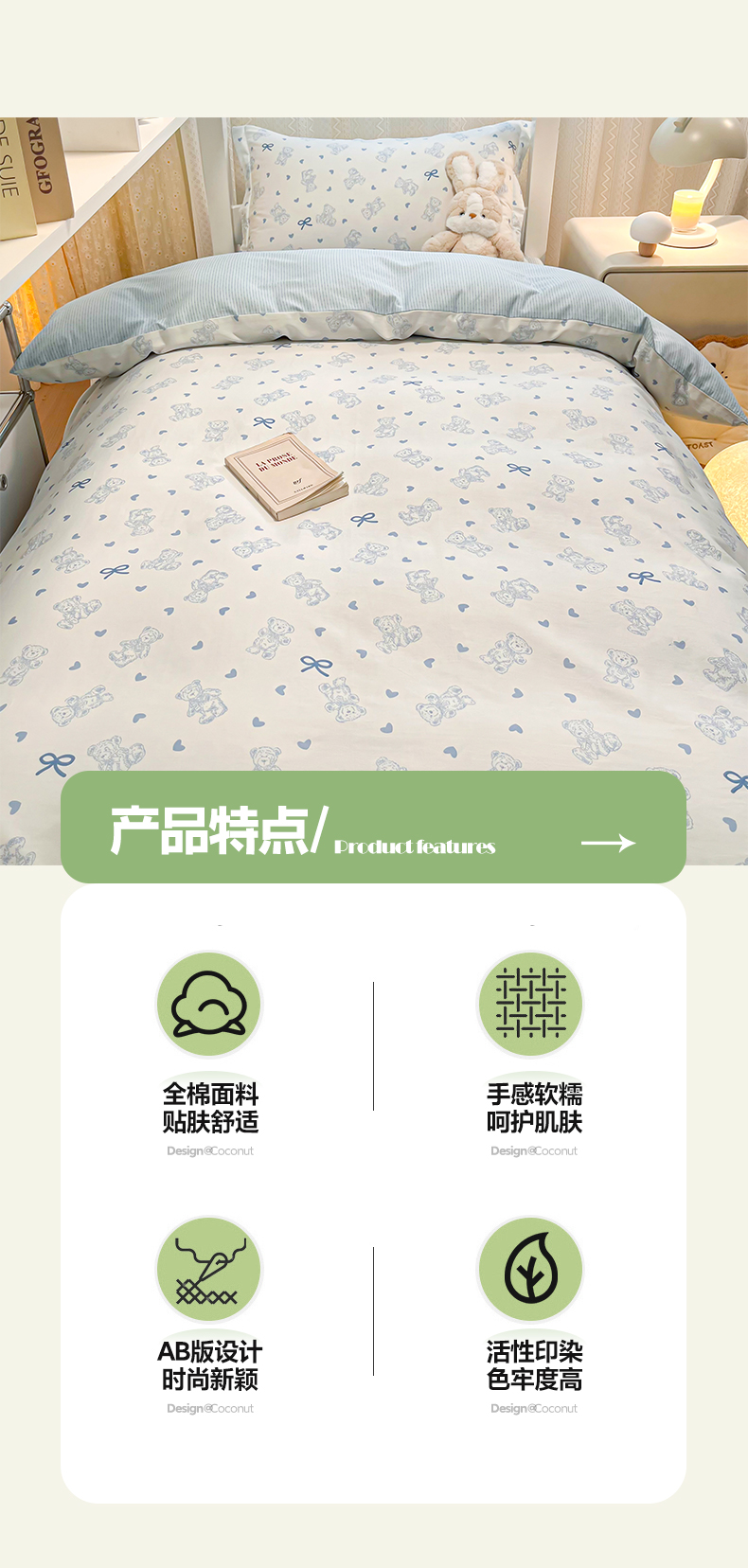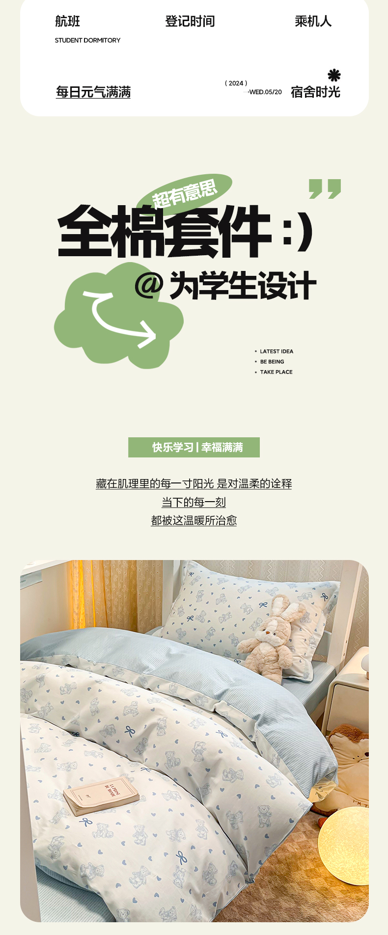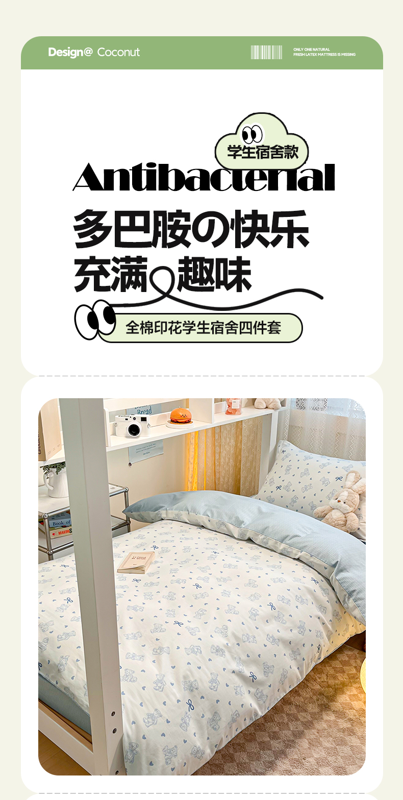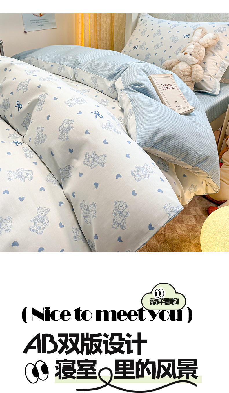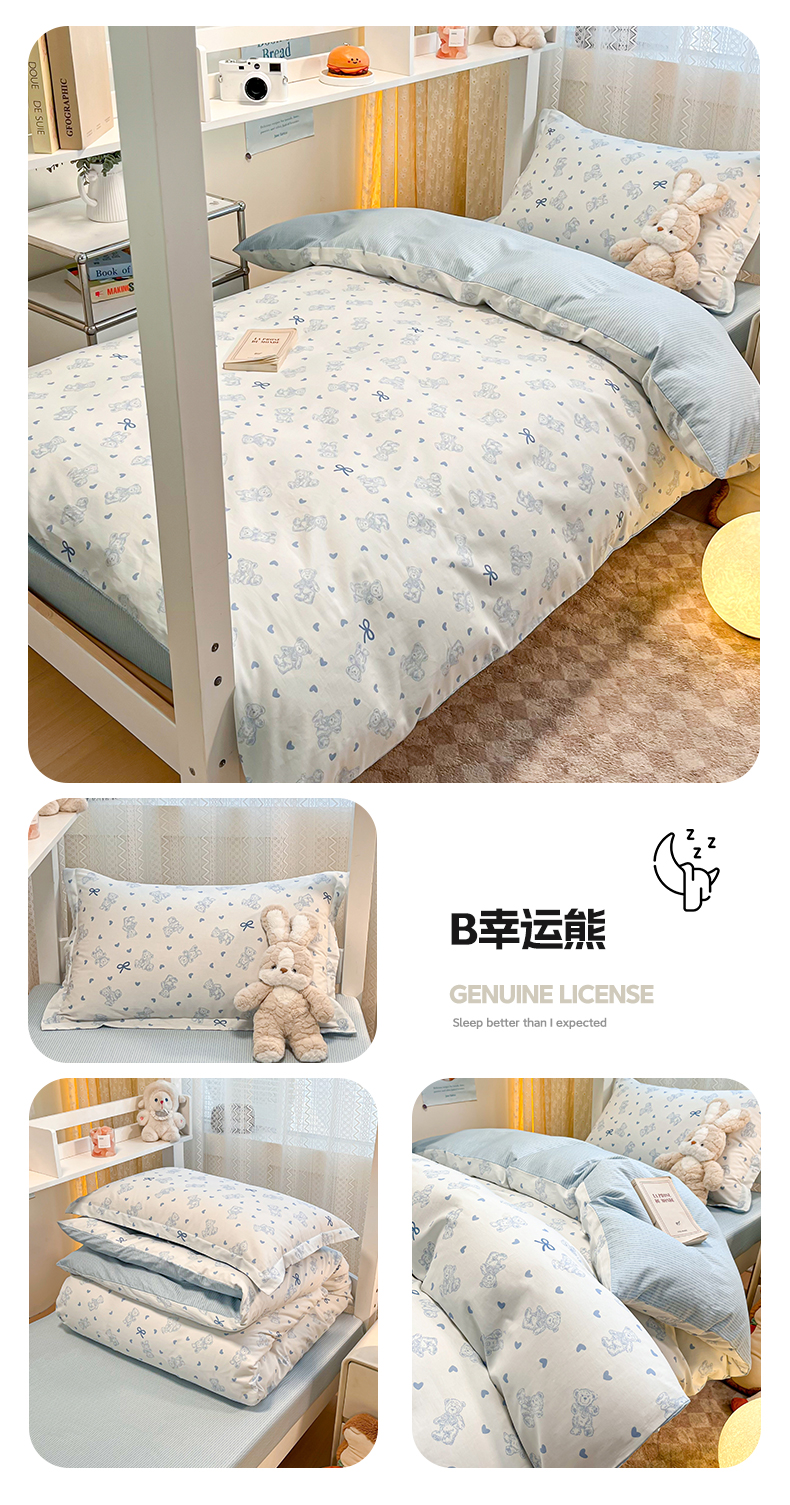 当前位置: 91家纺网 > 商品网购 > 床品套件 > 四件套 > 全棉普通四件套 > 2024新款小清新全棉印花学生宿舍三件套-68系列 B幸运熊