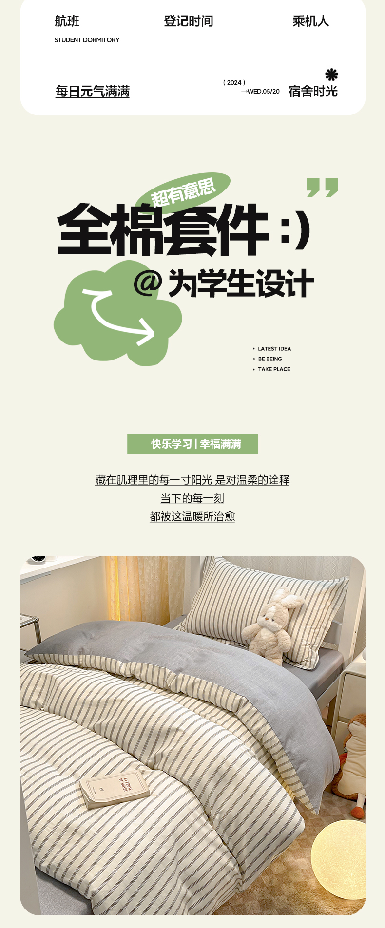 当前位置: 91家纺网 > 商品网购 > 床品套件 > 四件套 > 全棉普通四件套 > 2024新款小清新全棉印花学生宿舍三件套-68系列 D写书