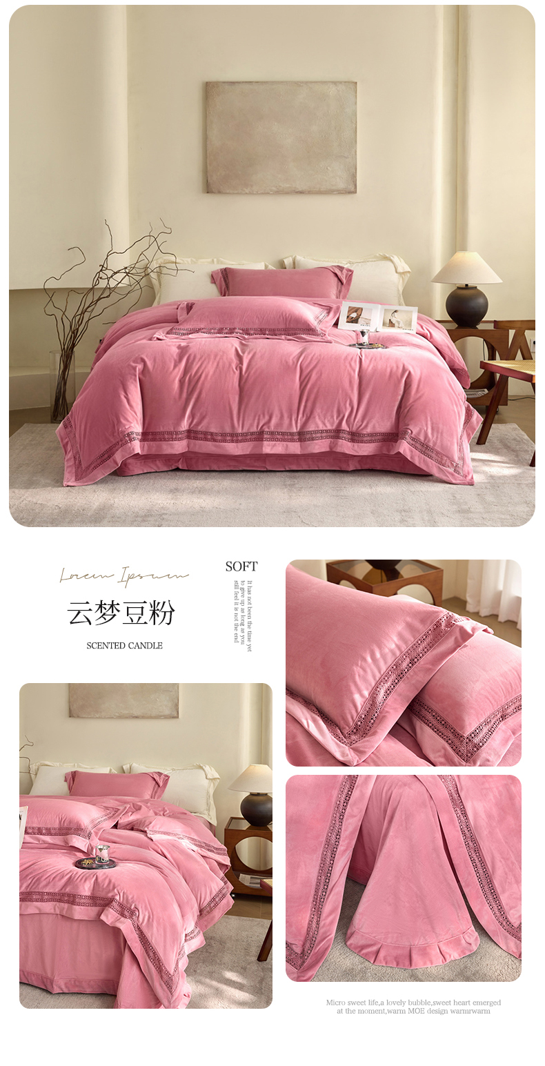 榻尚2023新款进口蕾丝缕空260克公主绒加厚牛奶绒秋冬款四件套,低调的华丽-粉玉,低调的华丽-海雾蓝,低调的华丽-奶茶棕,低调的华丽-象牙白