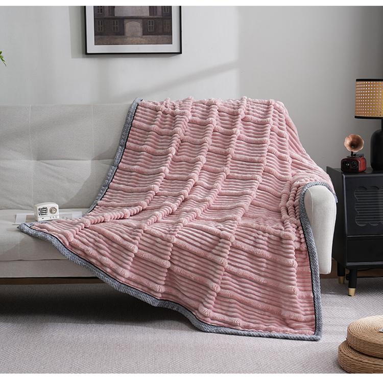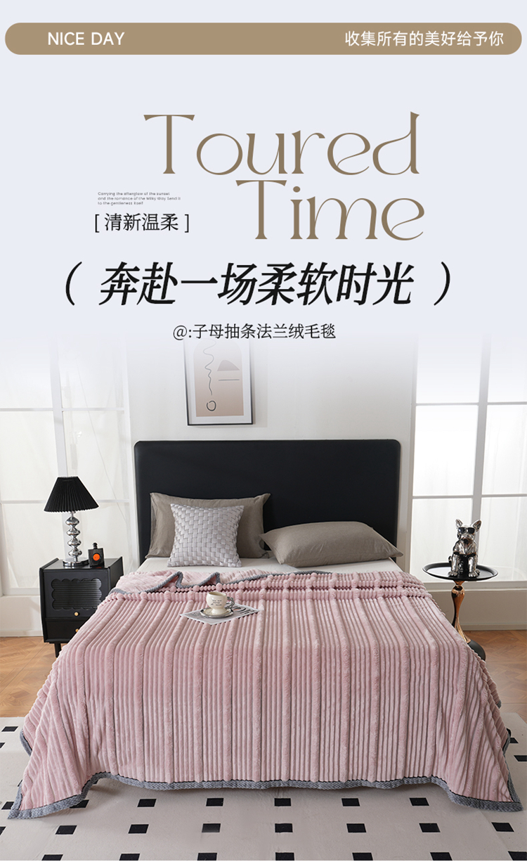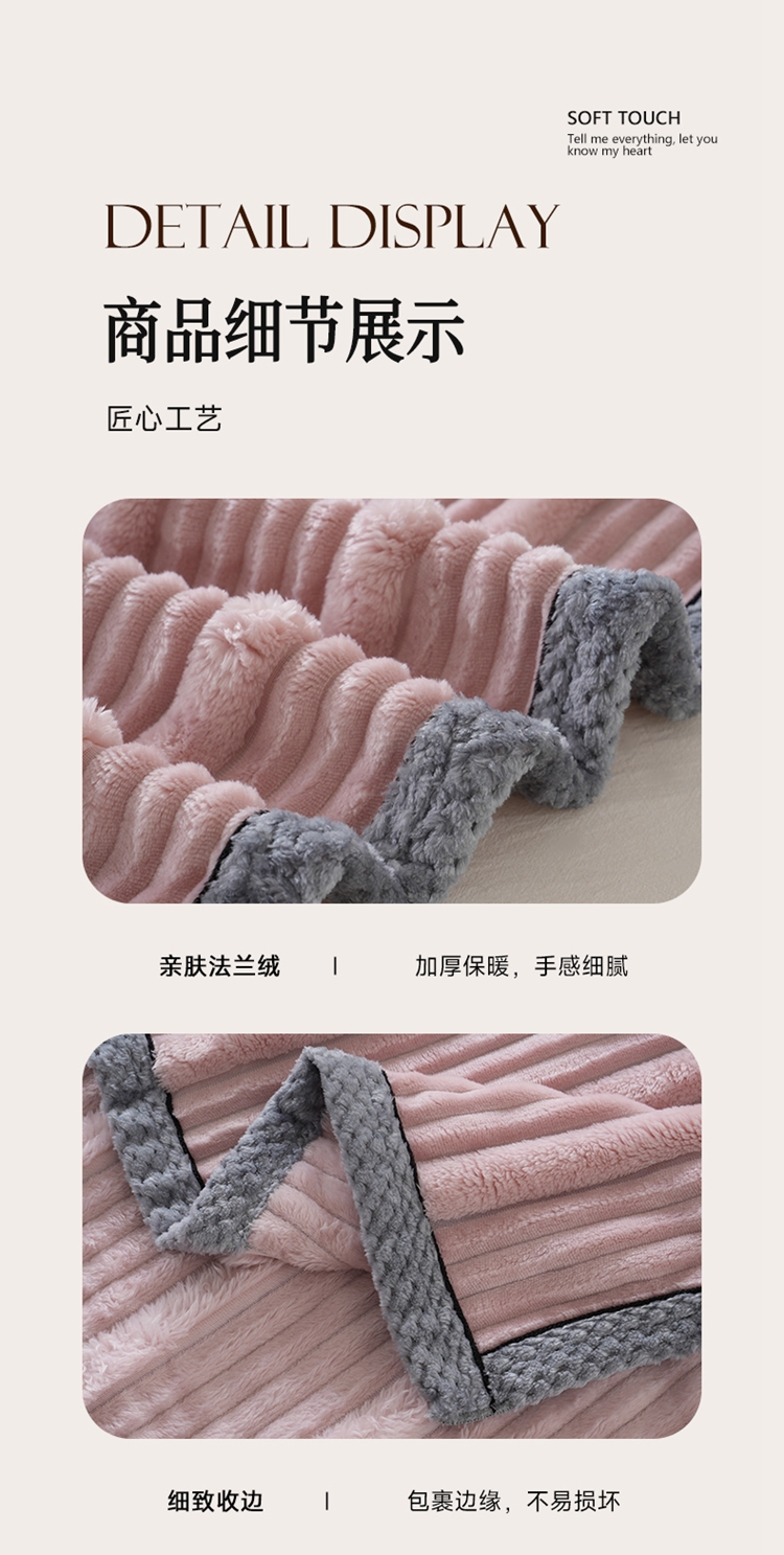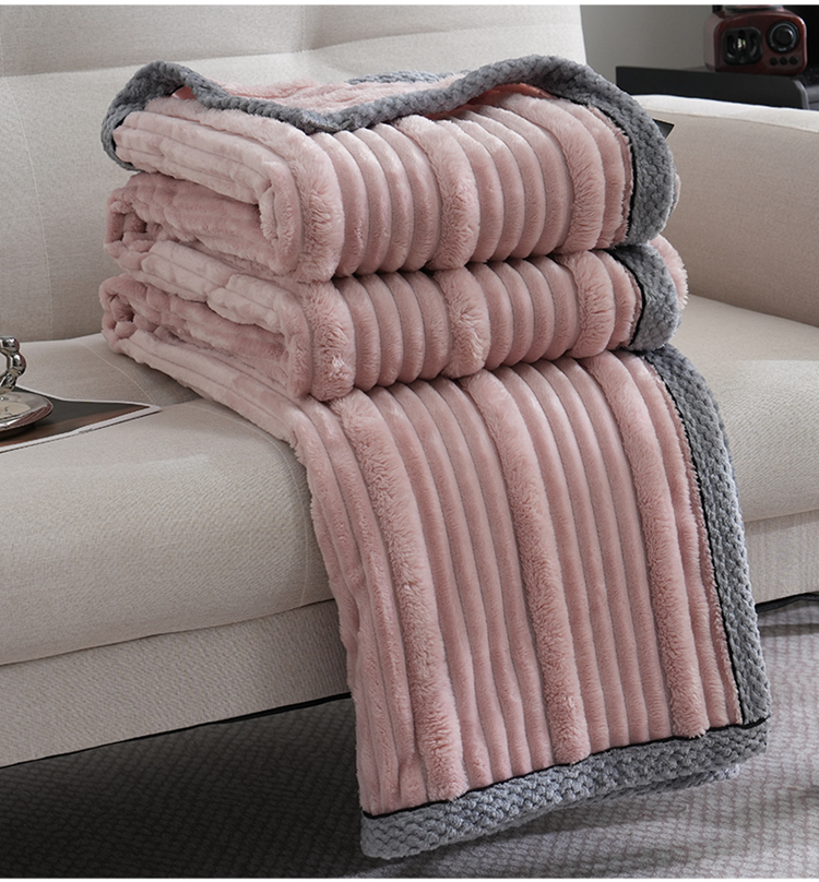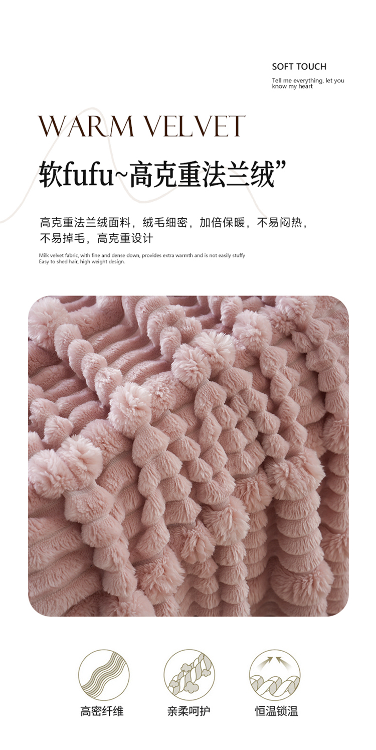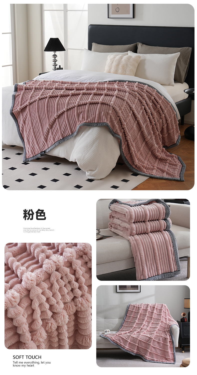 商品名称:巴木赫 2024新款子母抽条兔毛绒绒毯毯子 粉色