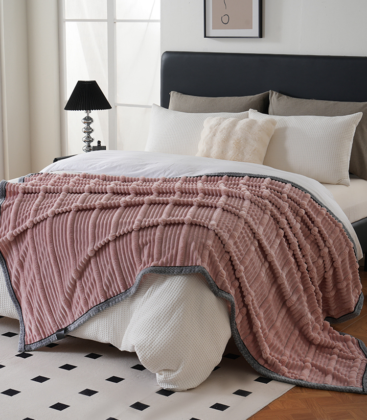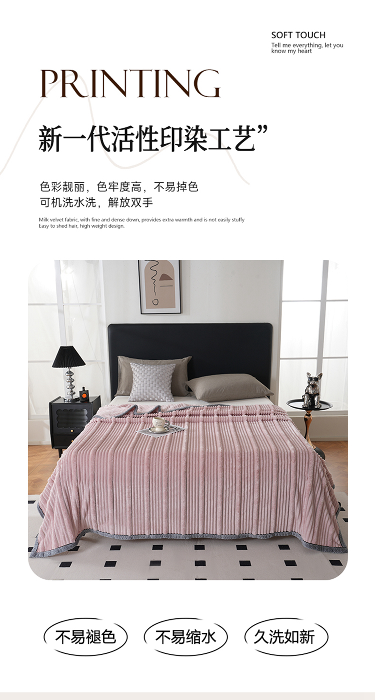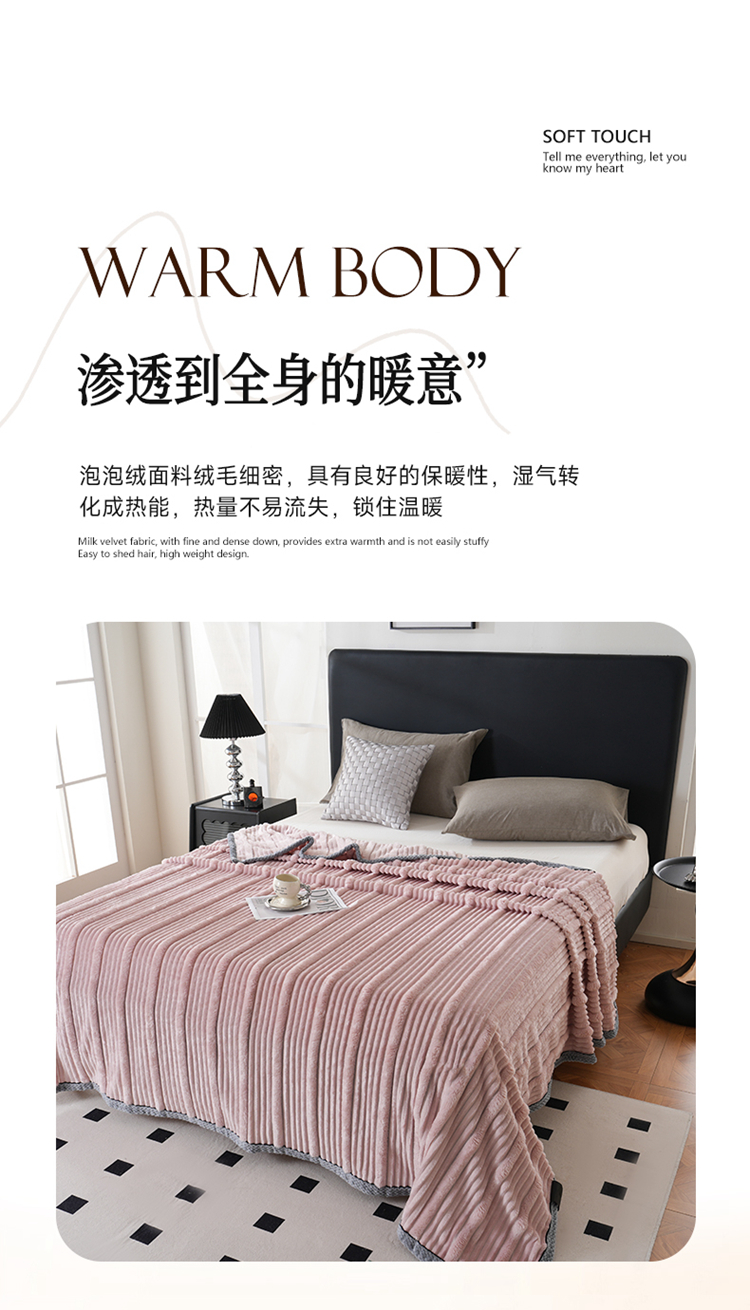 (总)巴木赫 2024新款子母抽条兔毛绒绒毯毯子,宾利蓝,粉色,卡其,墨绿,奶白,葡萄紫,浅驼,深灰,中灰