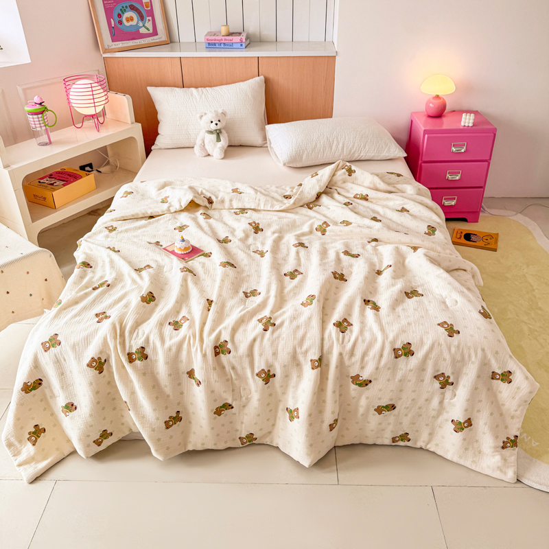 薇玛仕 2025新款A类全棉双层皱皱纱印花款大豆夏凉被空调被儿童被被子被芯 调皮小熊