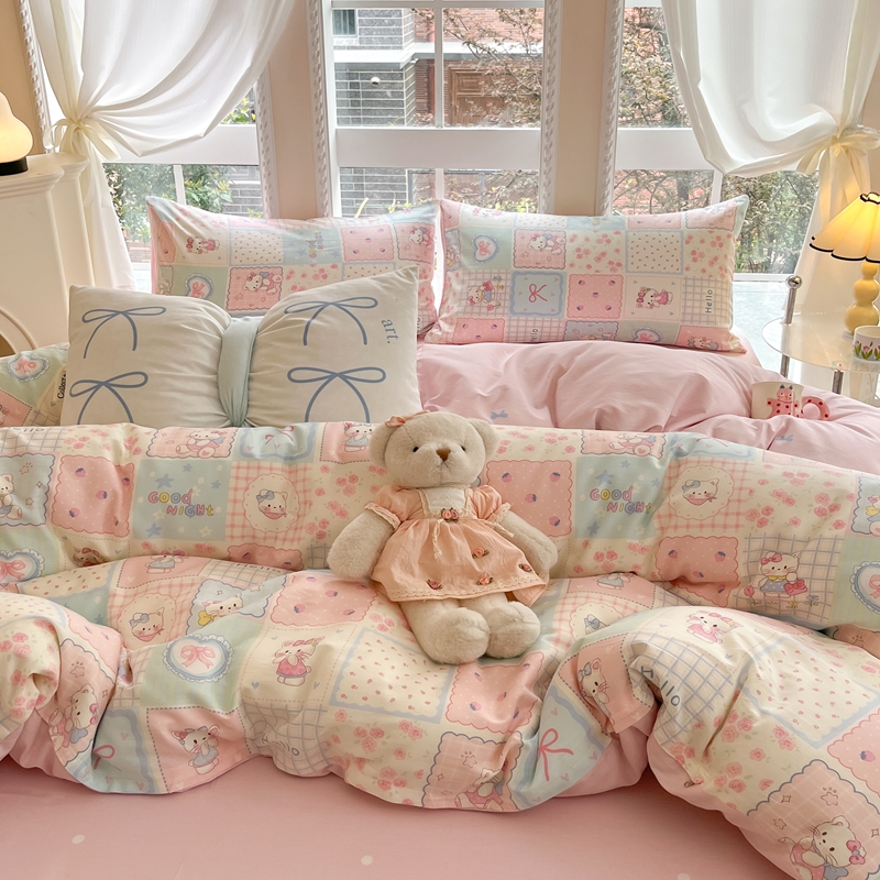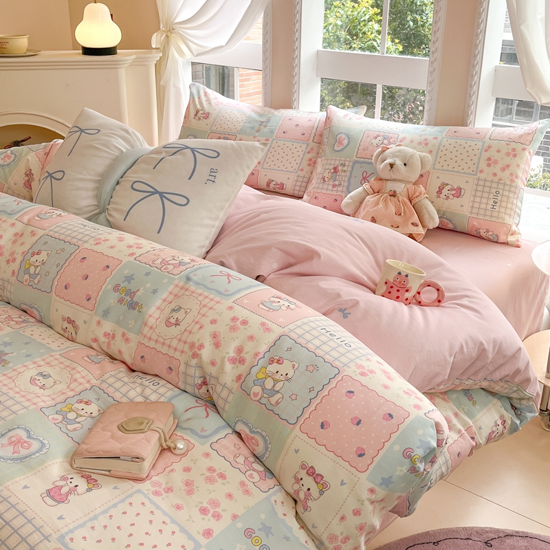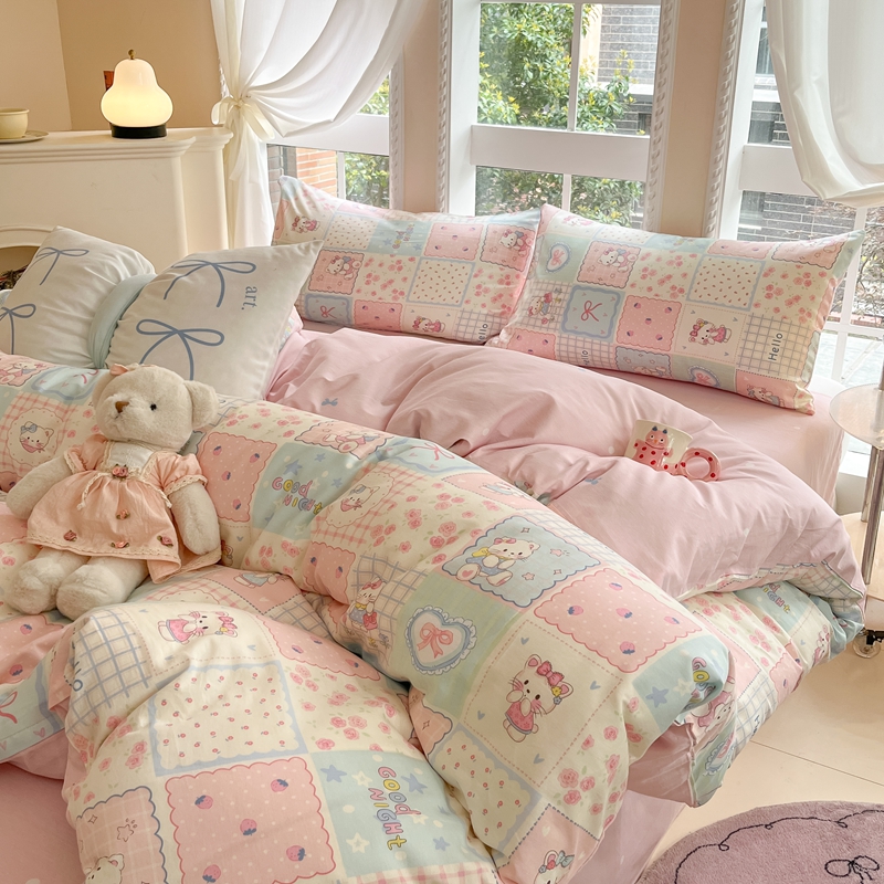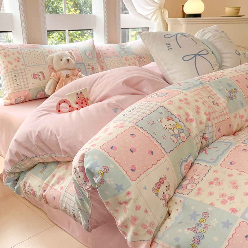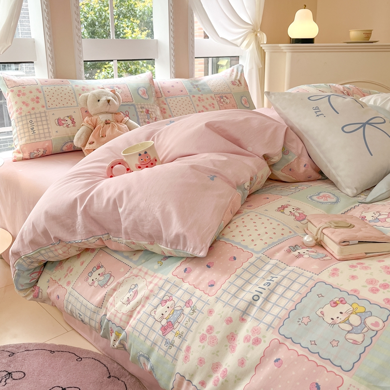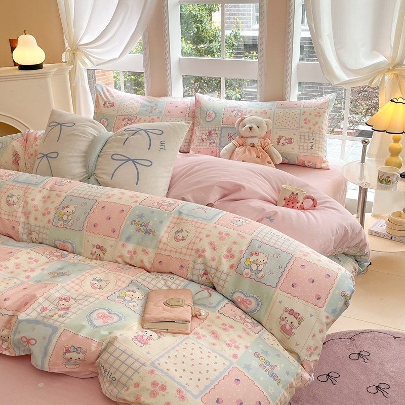 当前位置: 91家纺网 > 商品网购 > 床品套件 > 四件套 > 全棉普通四件套 > Sweet dreams甜梦 2025新款全棉印花卡通小清新四件套 格子猫猫