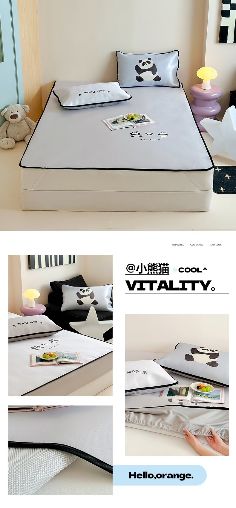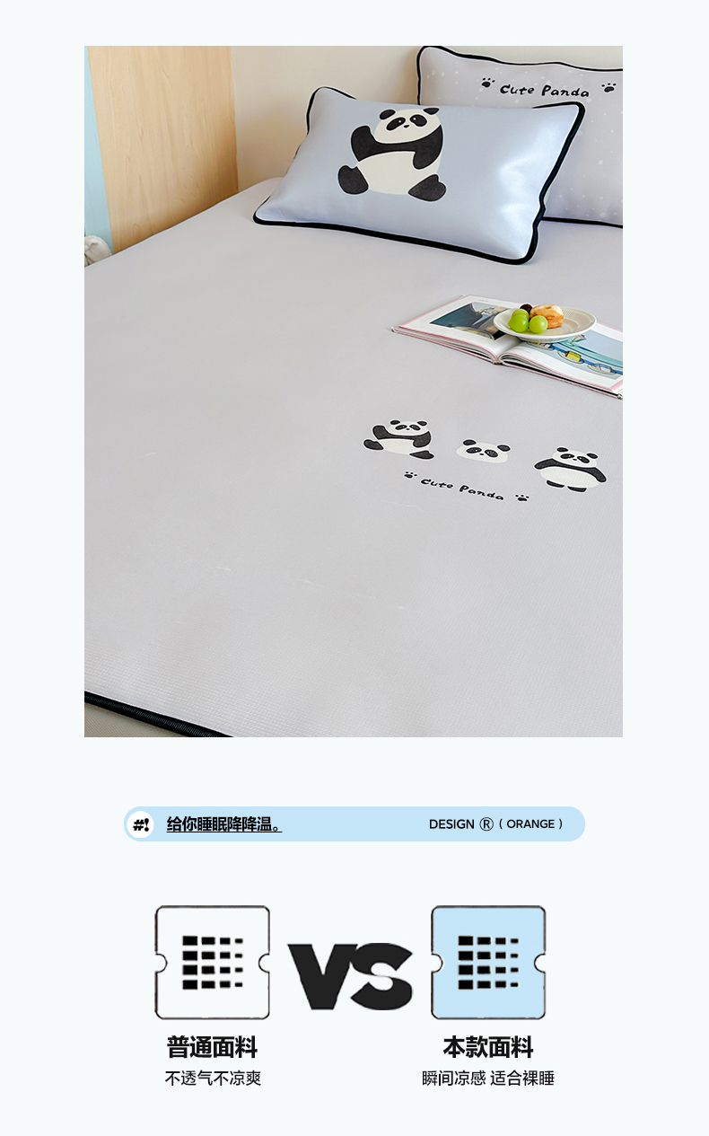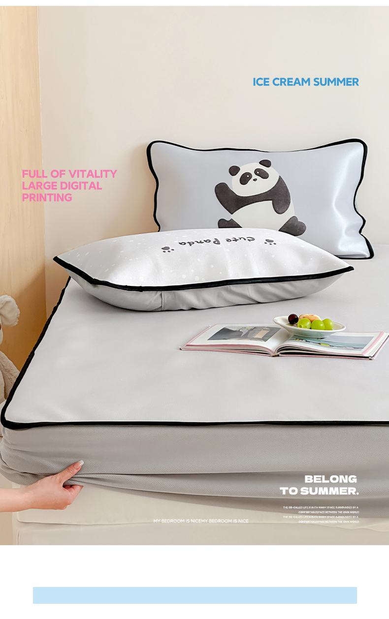 • 91家纺网 家纺一手货源 找家纺 如一2025A类ins大版数码卡通印花冰丝凉感席 小熊猫-床席