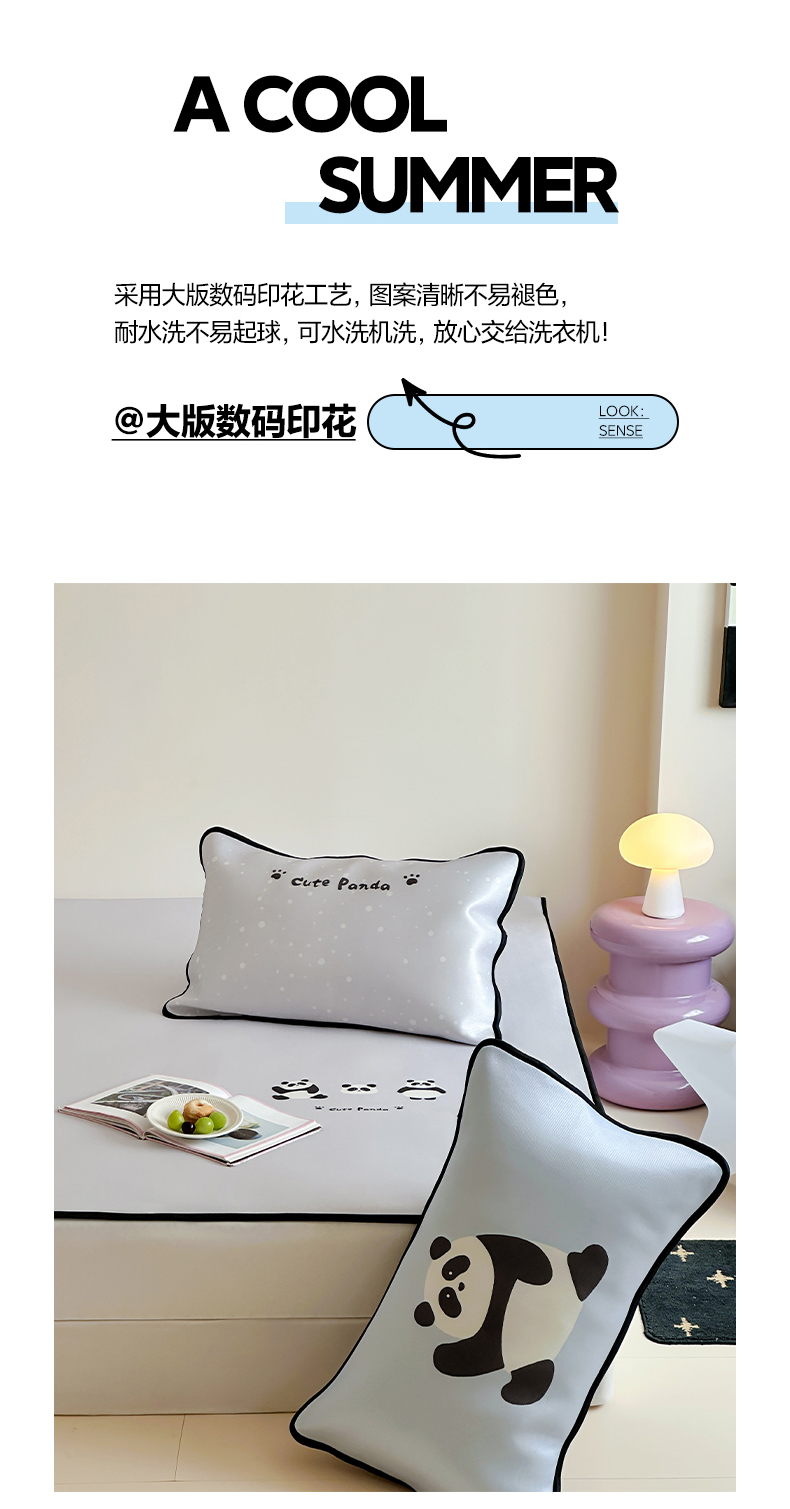 如一2025A类ins大版数码卡通印花冰丝凉感席 小熊猫-床席