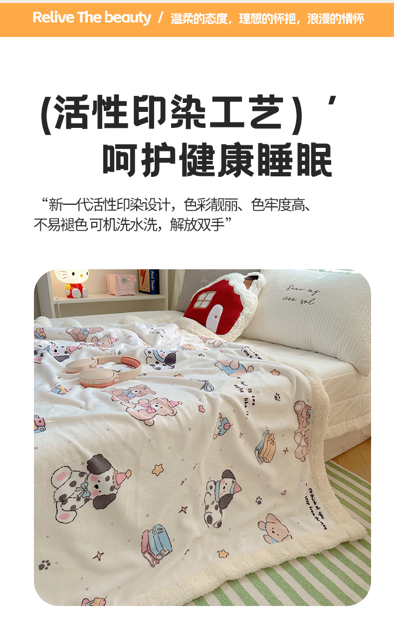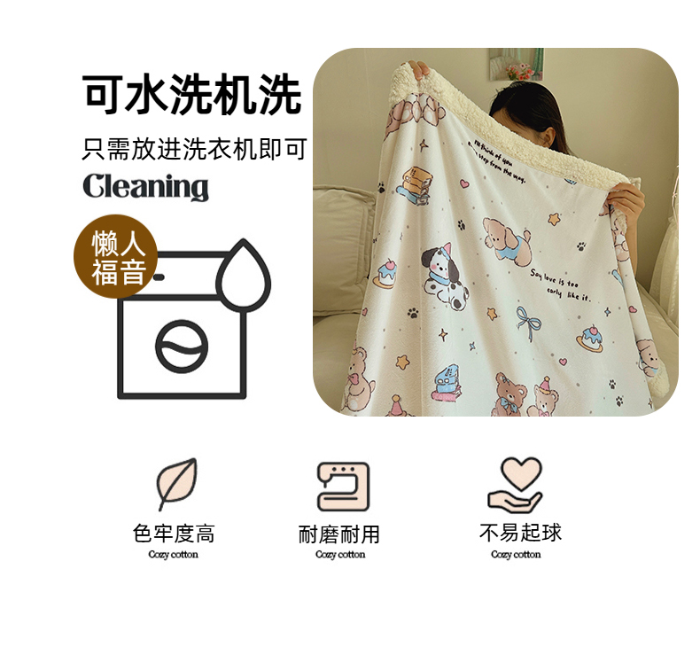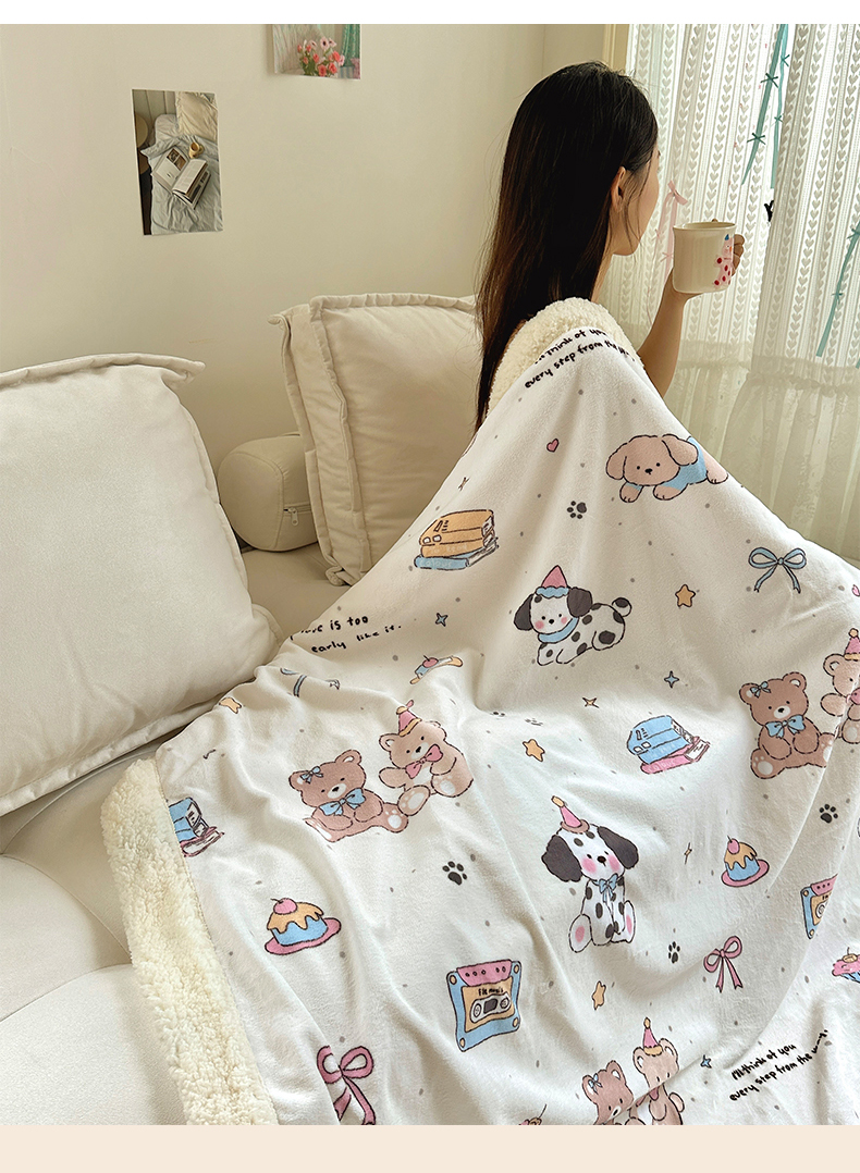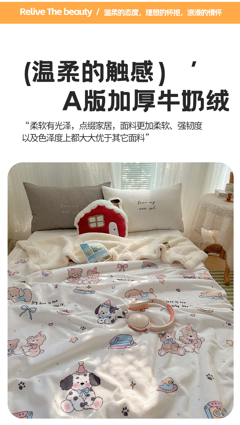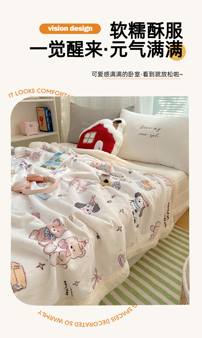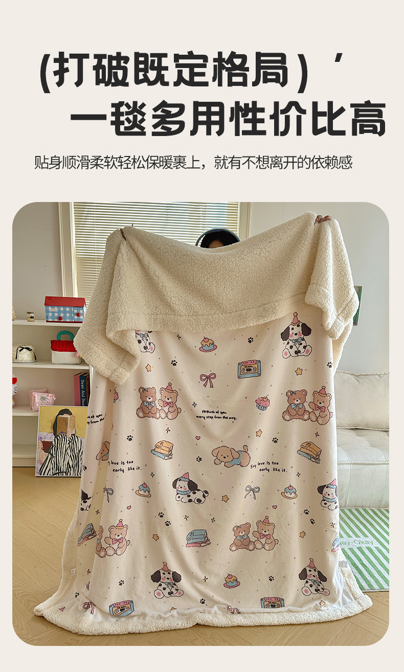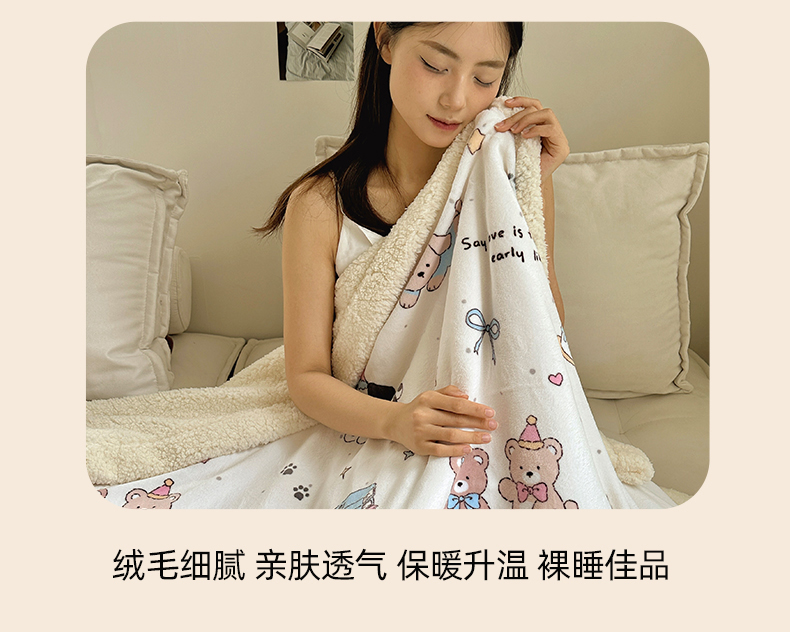 商品名称:六巷胡同 2025新款INS卡通A类牛奶绒羊羔绒毛毯毯子 磁带熊仔米
