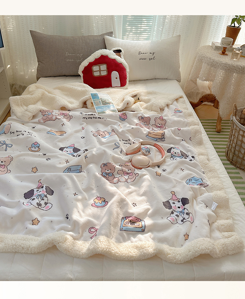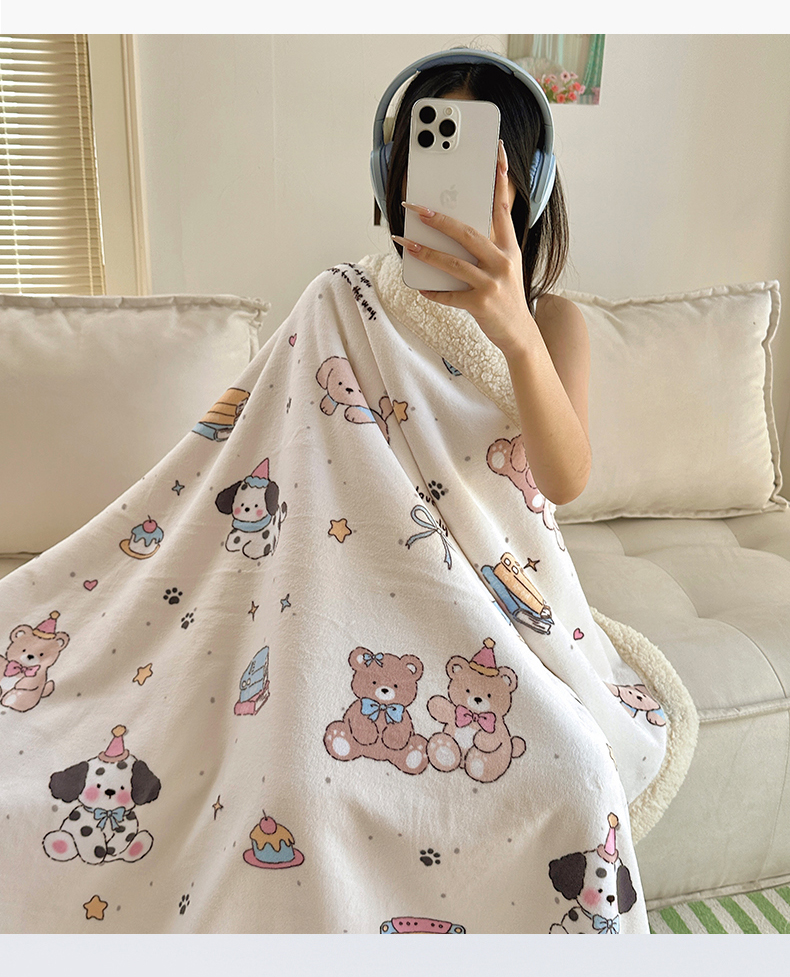 六巷胡同 2025新款INS卡通A类牛奶绒羊羔绒毛毯毯子 磁带熊仔米