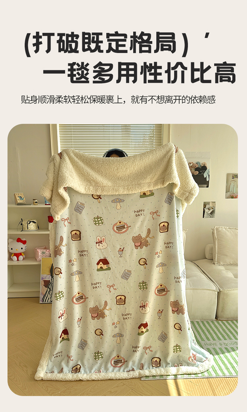 六巷胡同 2025新款INS卡通A类牛奶绒羊羔绒毛毯毯子 萌趣宠物趴