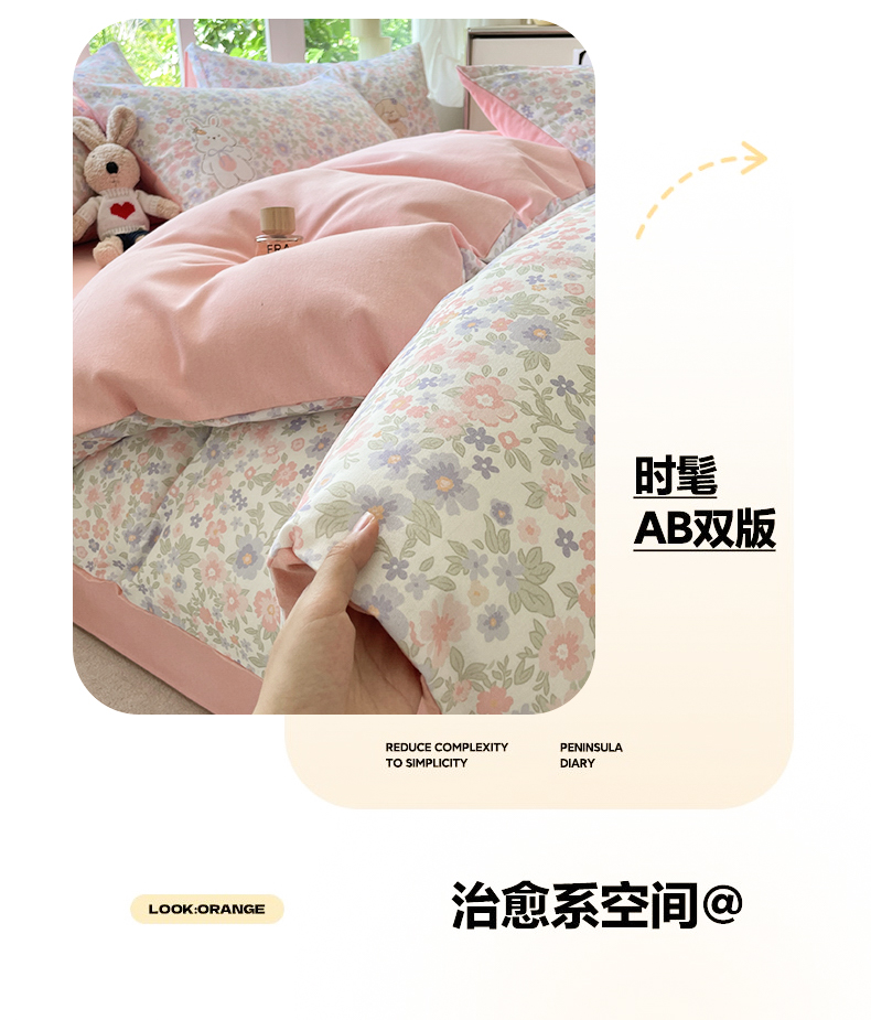 (总)本制 2025秋冬新款全棉混纺磨毛印花四件套,春熙-逍遥游,草莓泡芙-杨妃粉,憨睡-陶土色,花涧小兔-杨妃粉,花千束-杨妃粉,绿野仙踪-逍遥游,绿茵-蜜橙,落花-蜜橙,沫然-杨妃粉,秋意-逍遥游,甜心熊-陶土色,霞光(粉)-杨妃粉,霞光(橘)-蜜橙,霞光(蓝)-无心绿,霞光(紫)-杨妃粉,夏梦花园-杨妃粉,遥香-杨妃粉,织秋-蜜橙