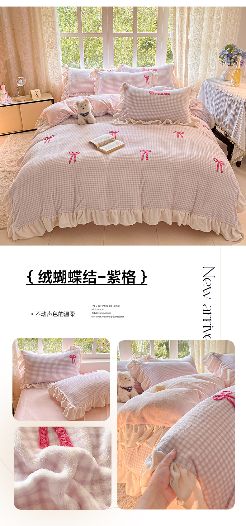 当前位置: 91家纺网 > 商品网购 > 床品套件 > 四件套 > 牛奶绒四件套 > 沐辰 2025新款牛奶绒绣花蝴蝶结花边款四件套 绒蝴蝶结-灰咖格