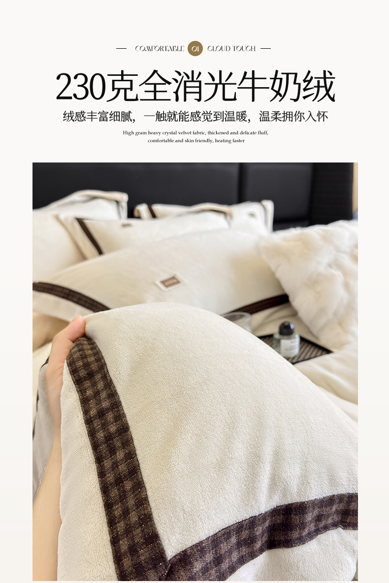 商品名称:(总)大米家居 2025新款牛奶绒织带轻奢工艺款四件套-卡夫系列