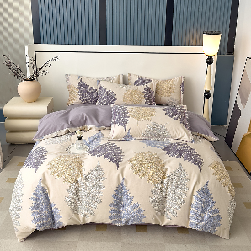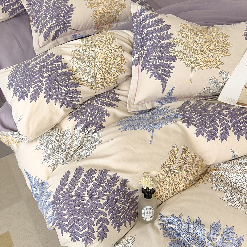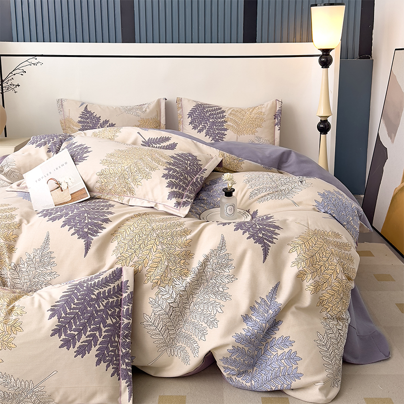 (总)优品阁 2025新款全棉纯棉A类人字斜三层纱提花四件套-叶叶情深系列,叶叶情深-公主粉,叶叶情深-卡其,叶叶情深-牛油果绿,叶叶情深-雾霾蓝