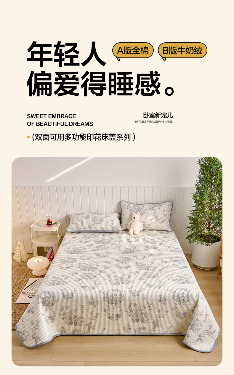 当前位置: 91家纺网 > 商品网购 > 床上用品 > 床盖 > X猫先生 2026新品A全棉B牛奶绒床盖一面全棉一面牛奶绒床盖炕盖加厚床单床垫四季款系列三 莫奈花园(A棉B绒)