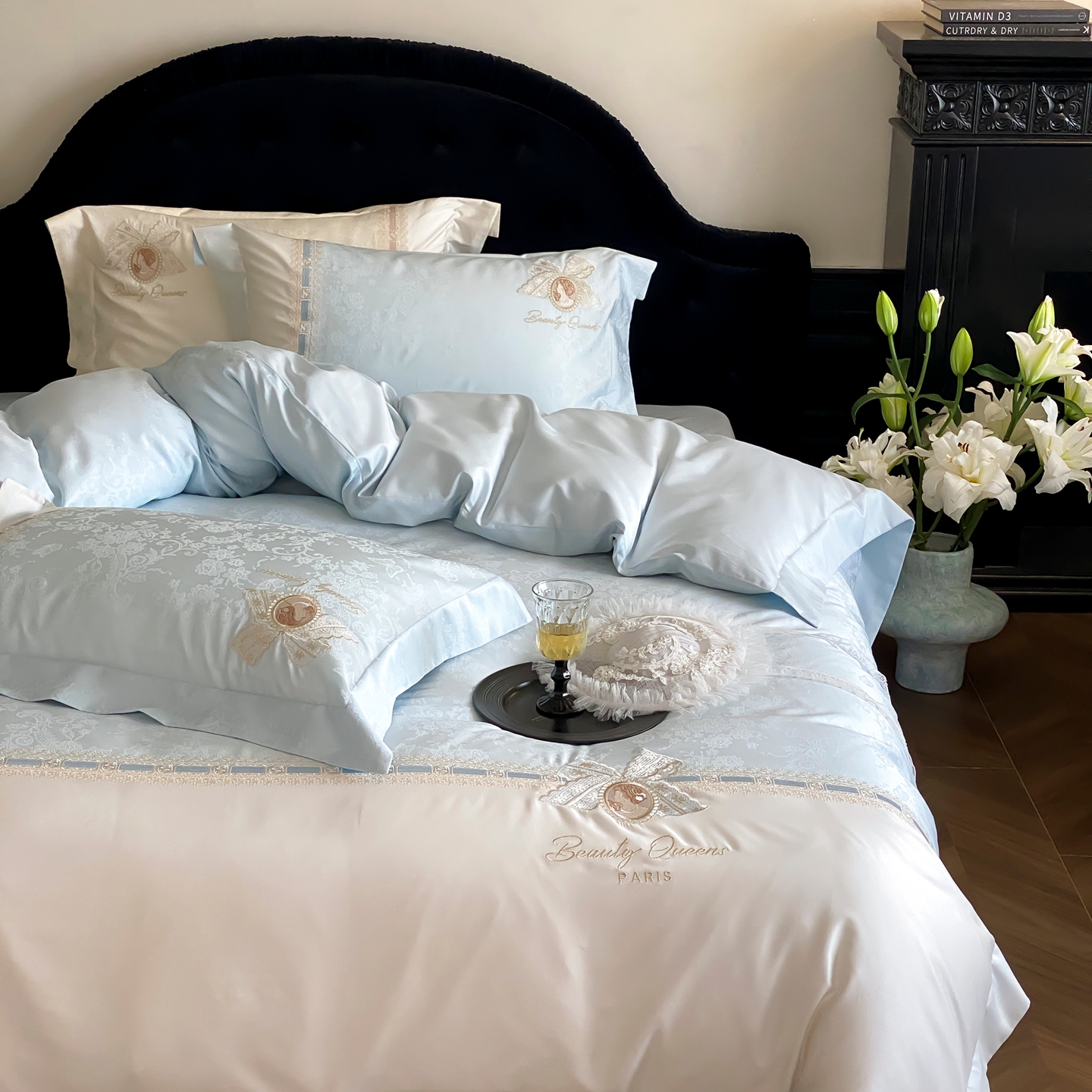 (总)初拾 2025新款全棉双股刺绣四件套-赫拉公主(棉),棉 赫拉公主-海边蓝,棉 赫拉公主-奶油粉