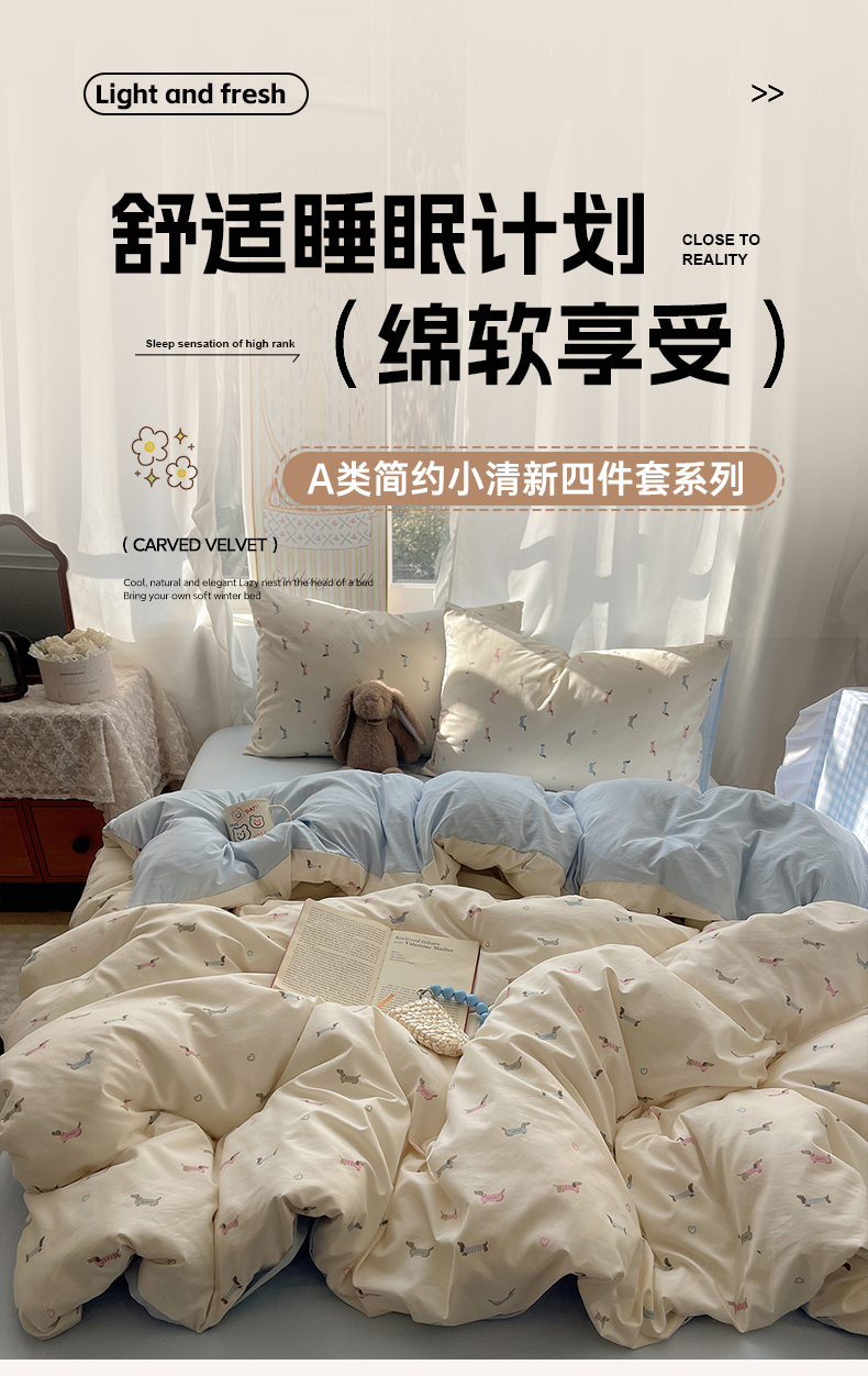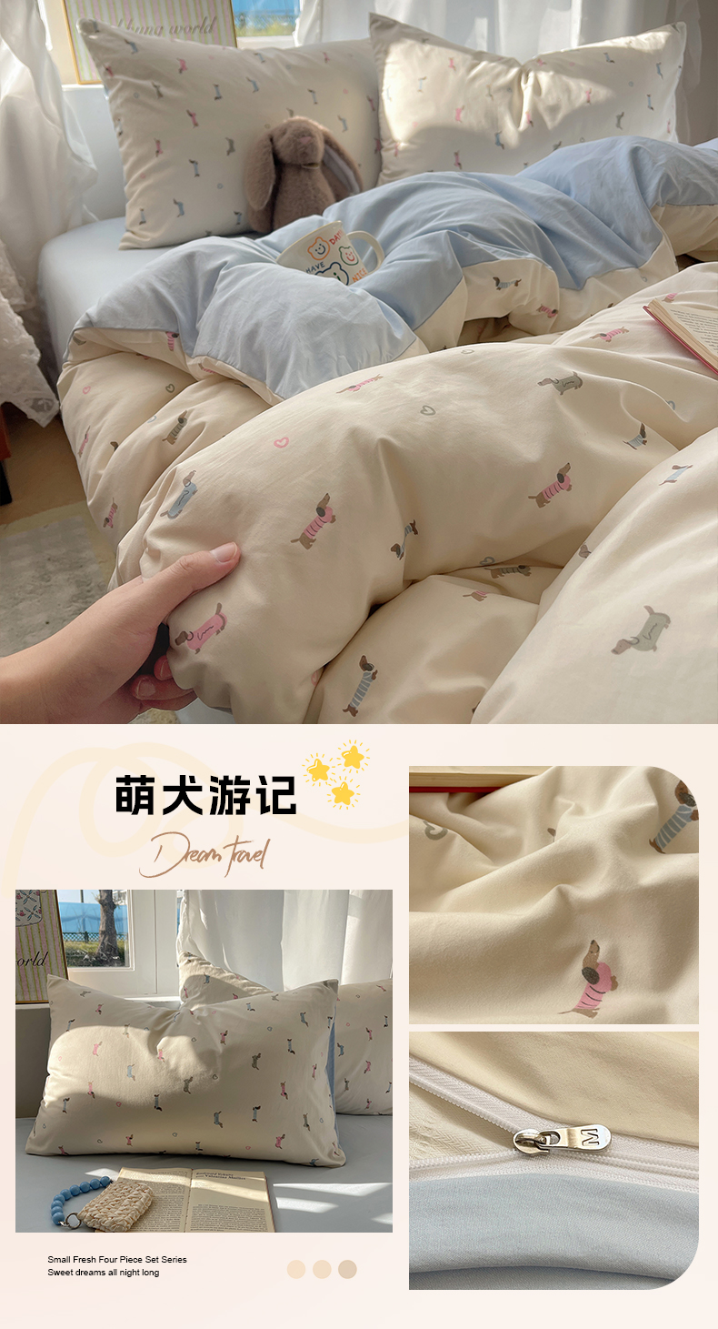 当前位置: 91家纺网 > 商品网购 > 床品套件 > 四件套 > 水洗棉四件套 > 初夏家纺 2026 古法仿棉水洗棉A类四件套被罩床单三件套床上用品卡通可爱【提供买家秀】 萌犬游记