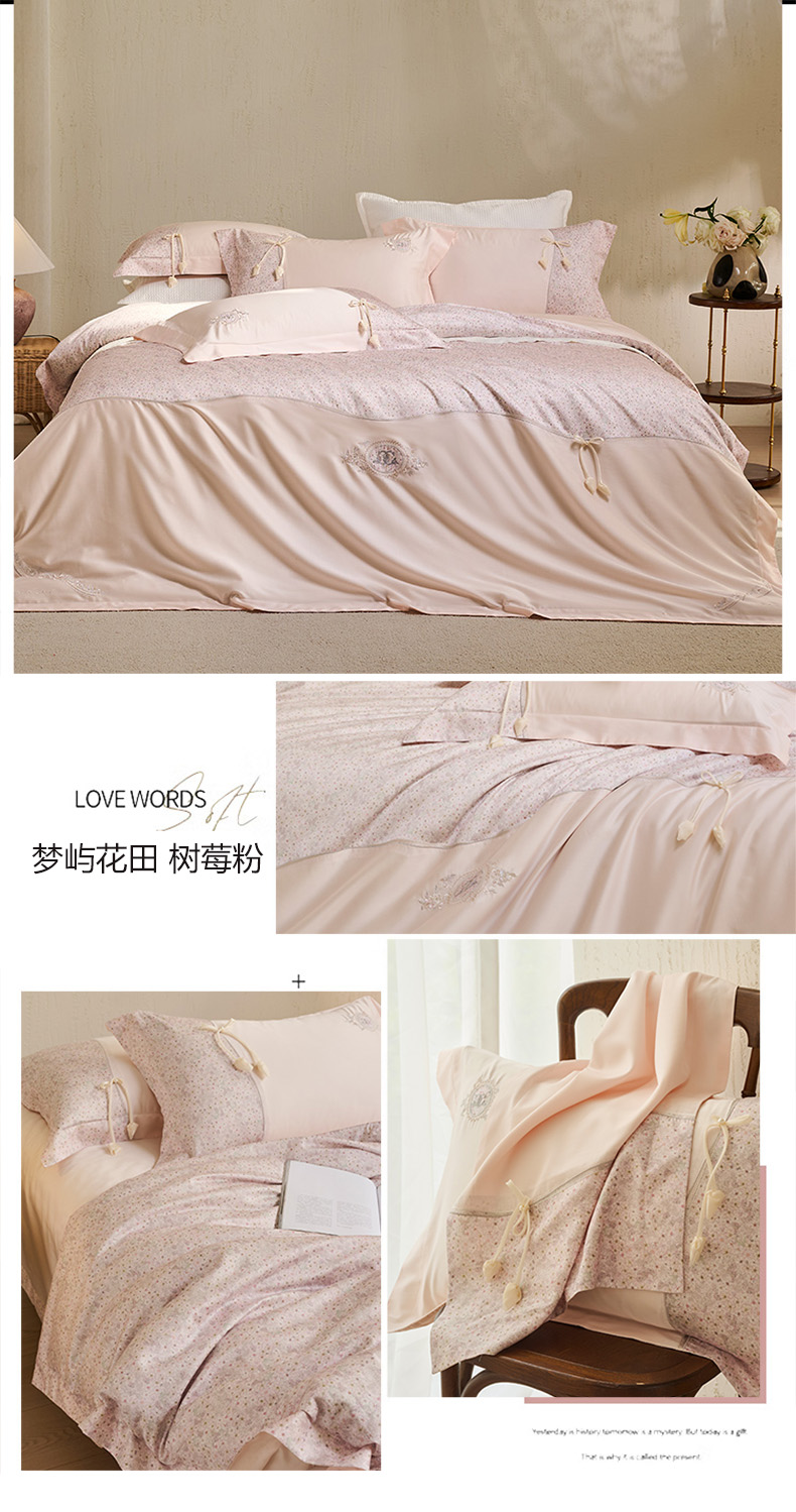 诗黛尔 2026春夏新款云朵棉梦屿花田系列四件套 梦屿花田-树莓粉
