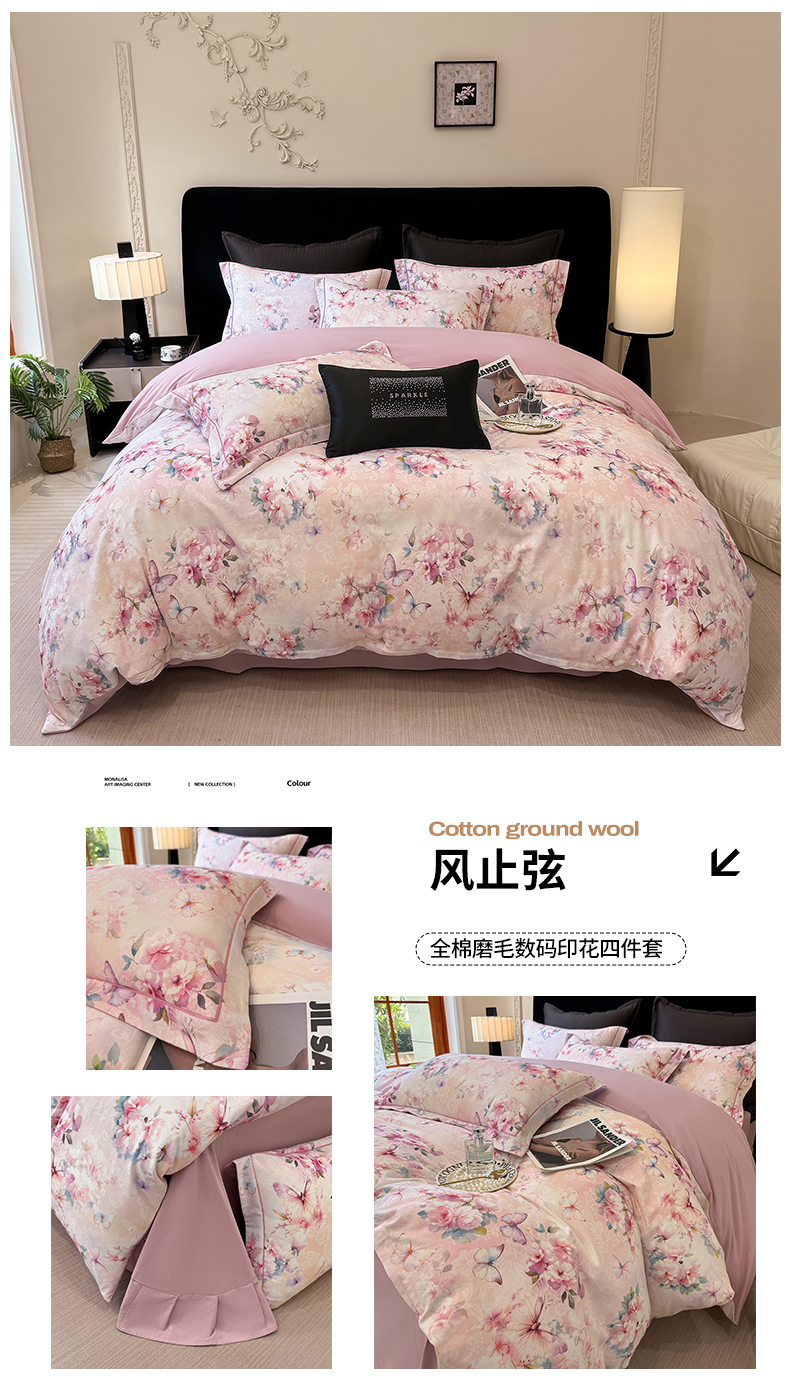 当前位置: 91家纺网 > 商品网购 > 床品套件 > 四件套 > 全棉普通四件套 > 优迈 2026新款全棉纯棉磨毛数码印花四件套 风止弦