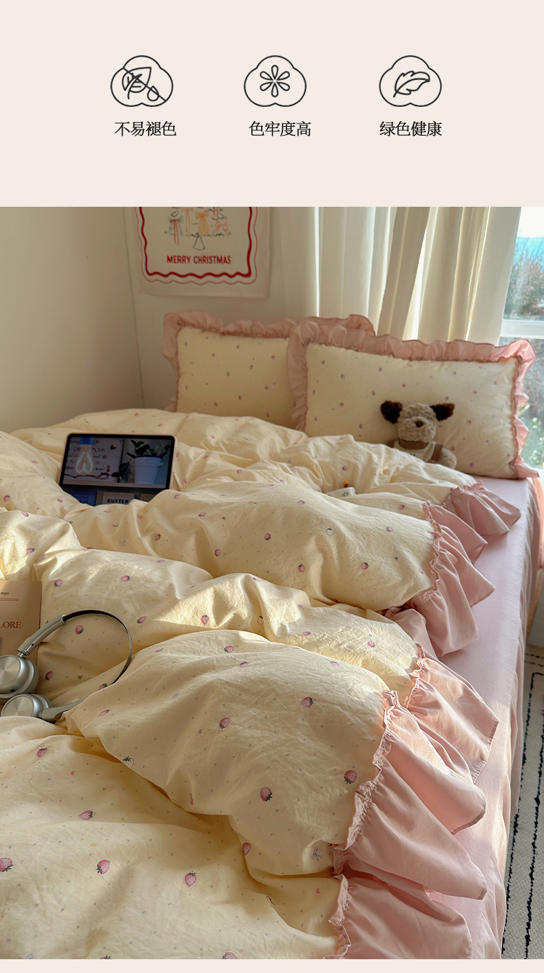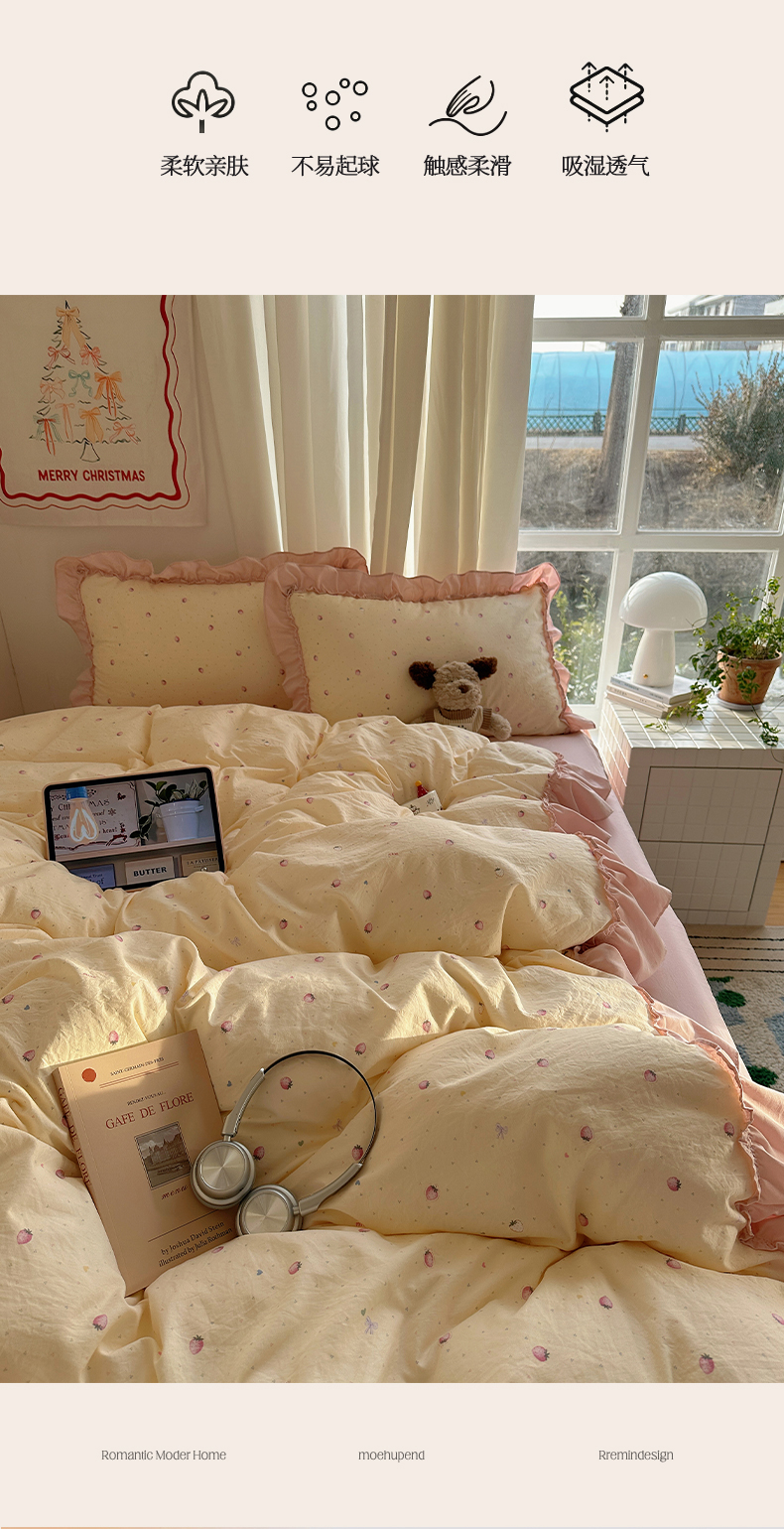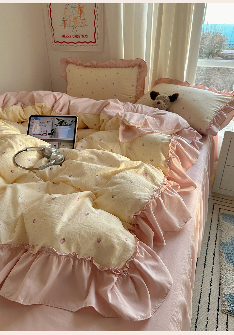 当前位置: 91家纺网 > 商品网购 > 床品套件 > 四件套 > 其它四件套 > 韩都家居 2026新款韩系大花边系列古棉四件套 莓果