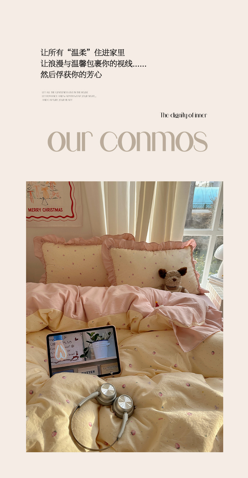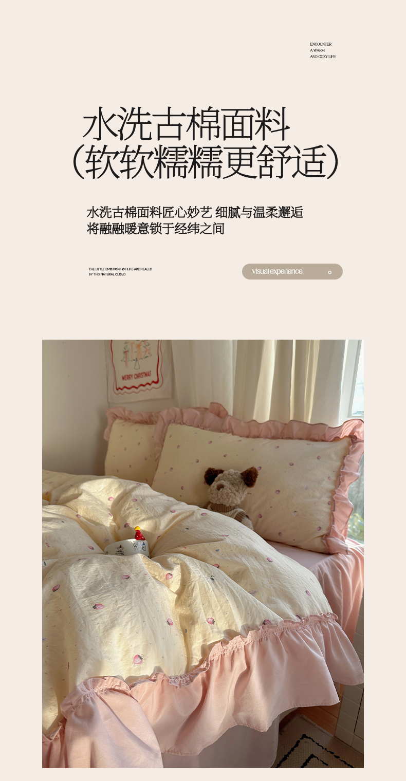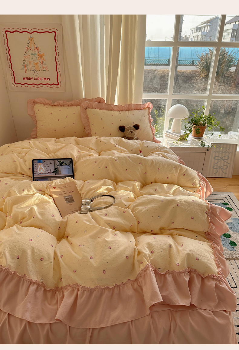 当前位置: 91家纺网 > 商品网购 > 床品套件 > 四件套 > 其它四件套 > 韩都家居 2026新款韩系大花边系列古棉四件套 莓果