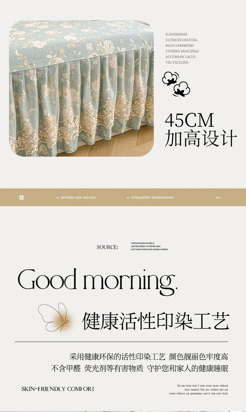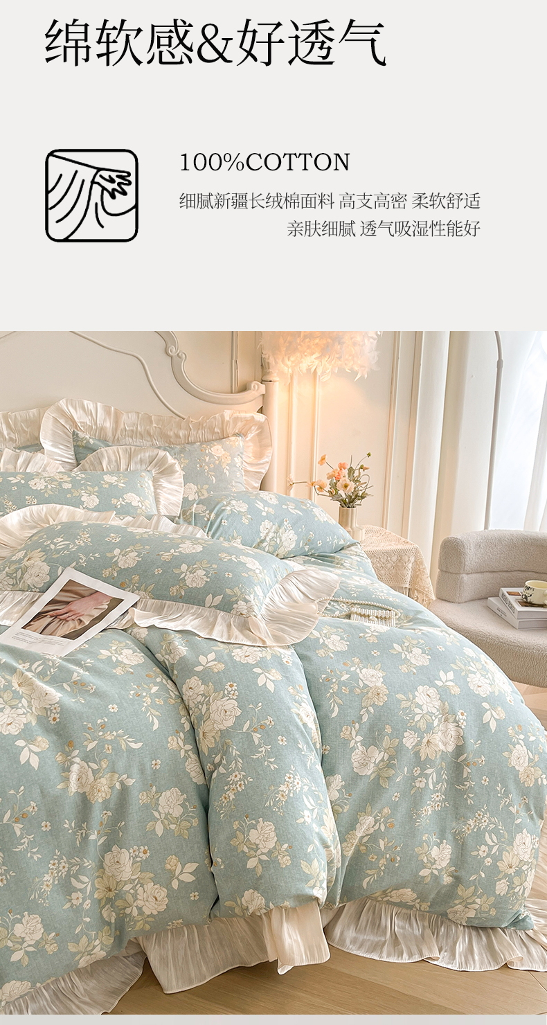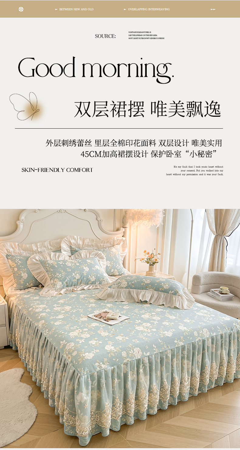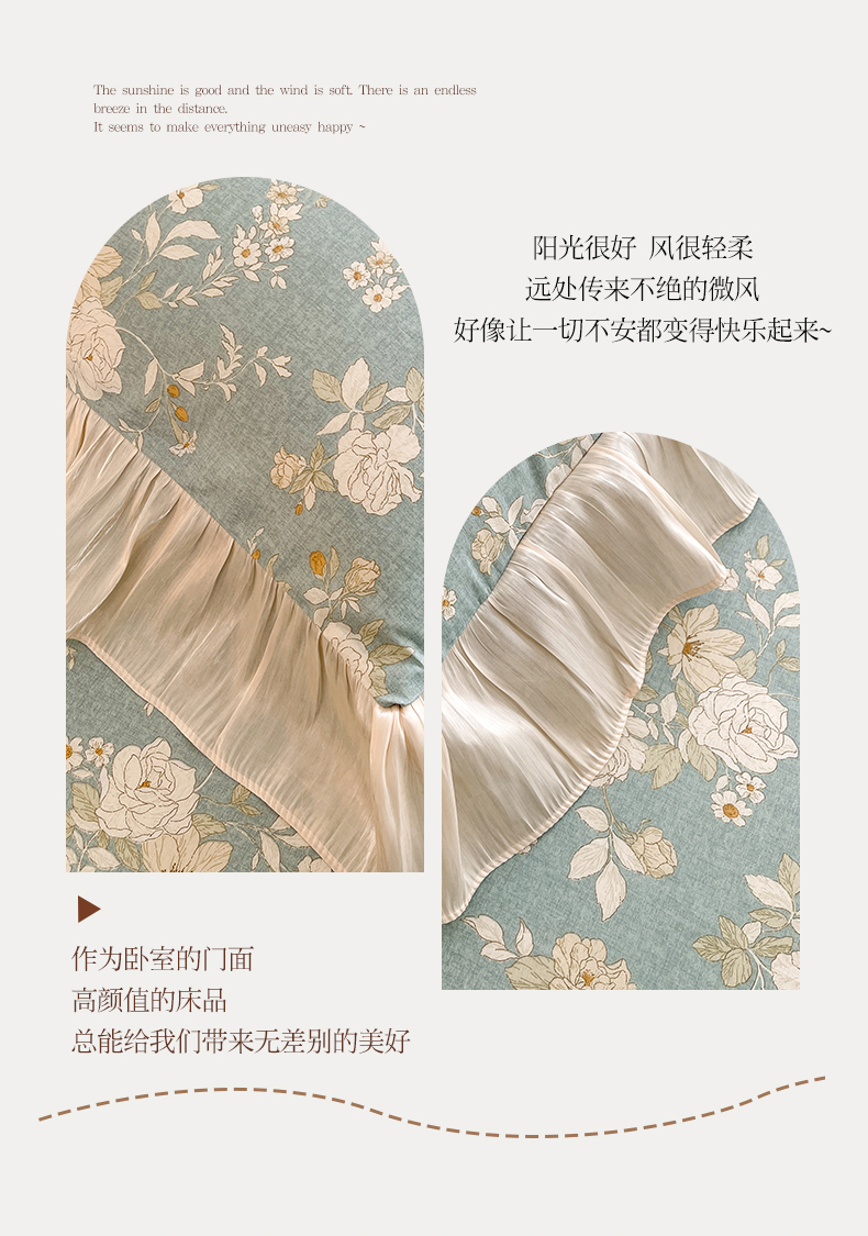 (总)宜凡家纺 2026新款全棉印花床裙款三件套,尘世浮华,春日微光,花黛织梦,曼妙花香,晴空,寻觅花季
