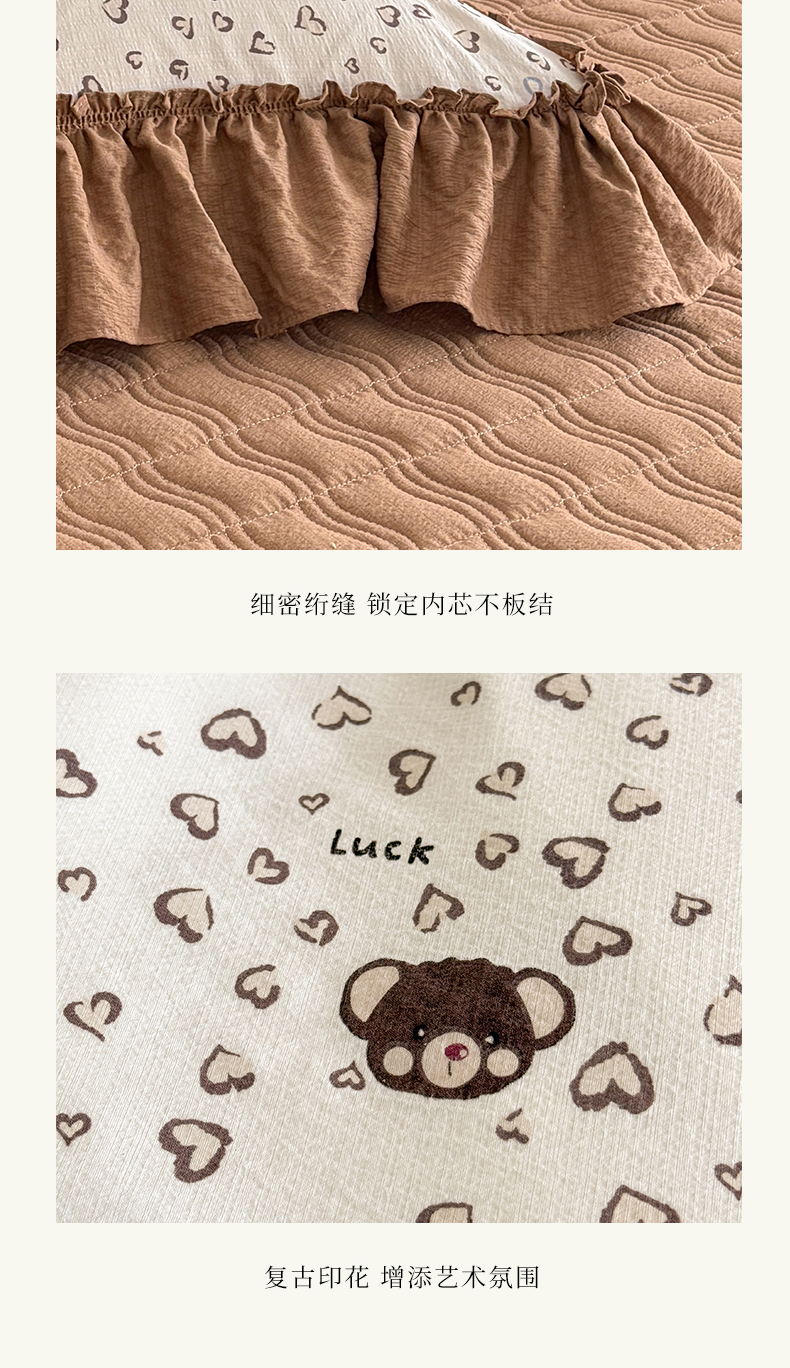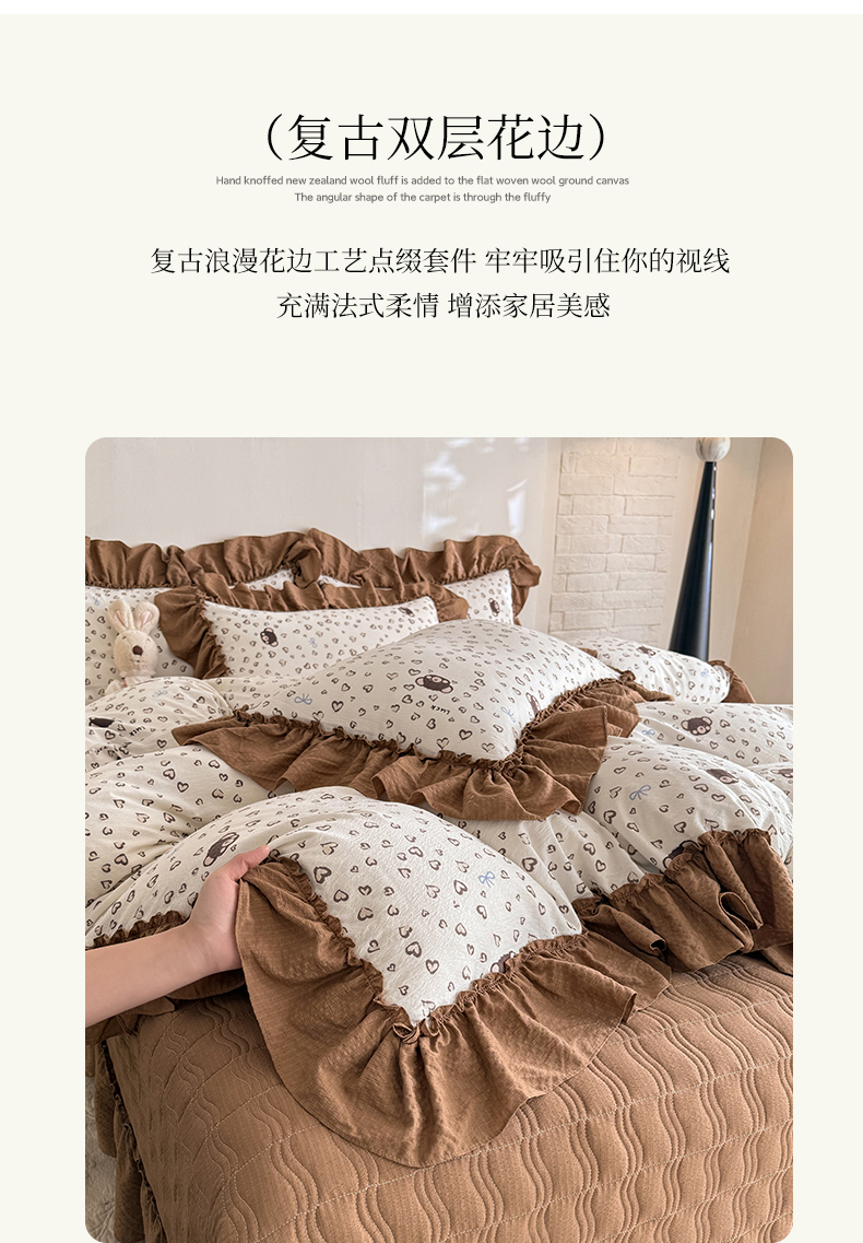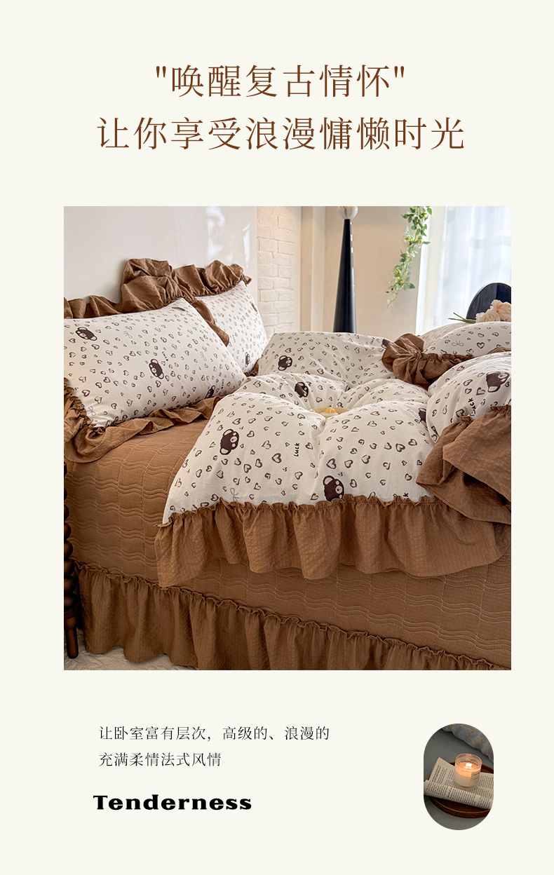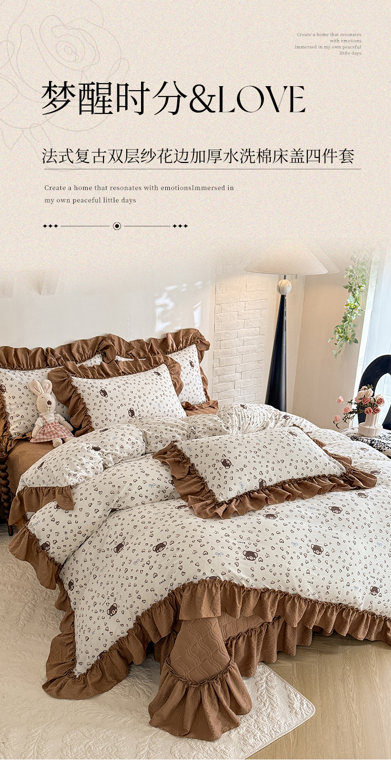 当前位置: 91家纺网 > 商品网购 > 床品套件 > 四件套 > 双层纱四件套 > 贝凯瑞 2026新款双层纱木棉水洗棉法式复古花边床盖单件三件四件套-焦糖系列 焦糖熊