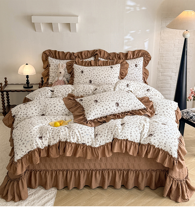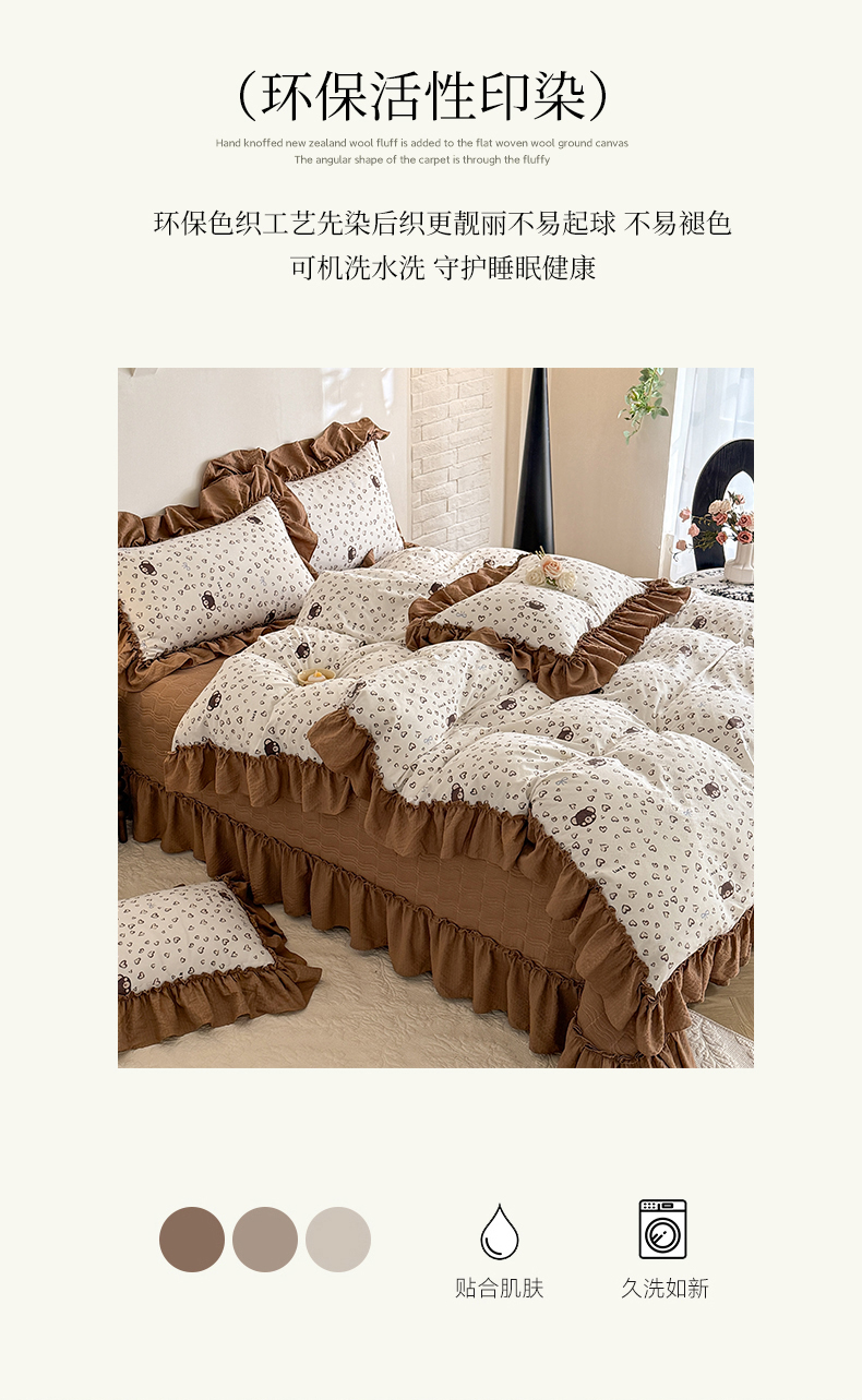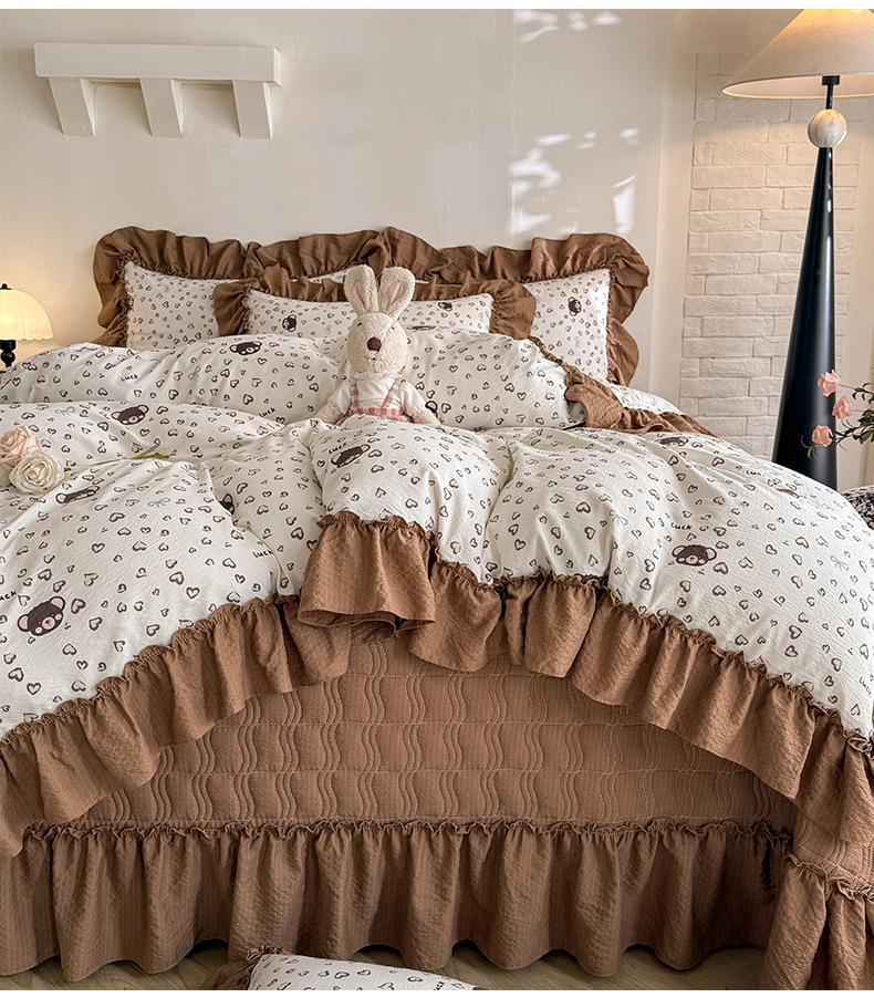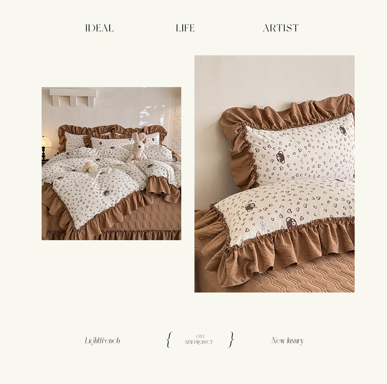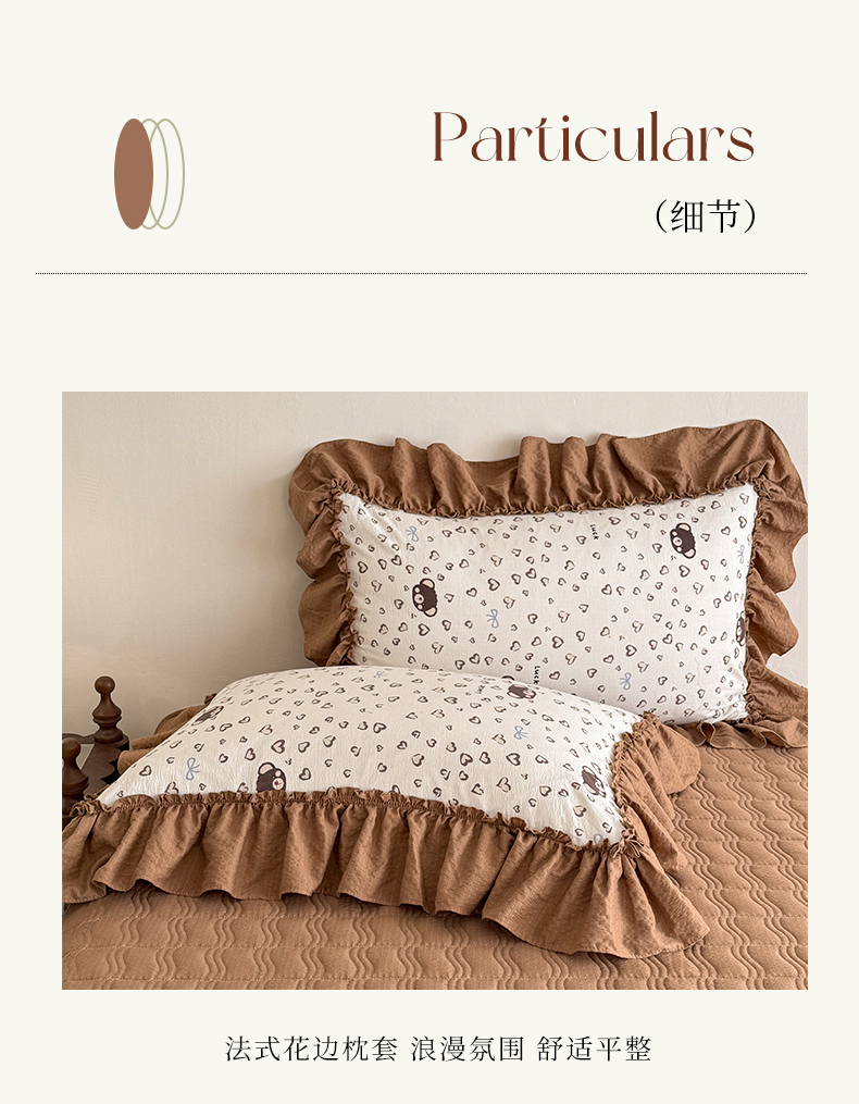 当前位置: 91家纺网 > 商品网购 > 床品套件 > 四件套 > 双层纱四件套 > 贝凯瑞 2026新款双层纱木棉水洗棉法式复古花边床盖单件三件四件套-焦糖系列 焦糖熊