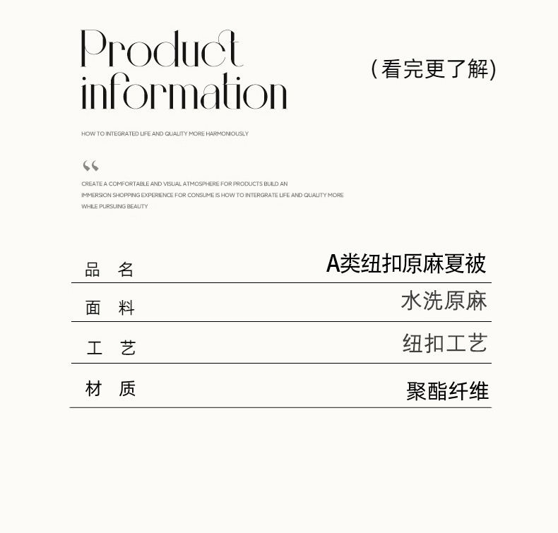 商品名称:圣比熊 2026新款A类夏天原麻纽扣加厚夏被宿舍双人床仿亚麻被子被芯 梵希