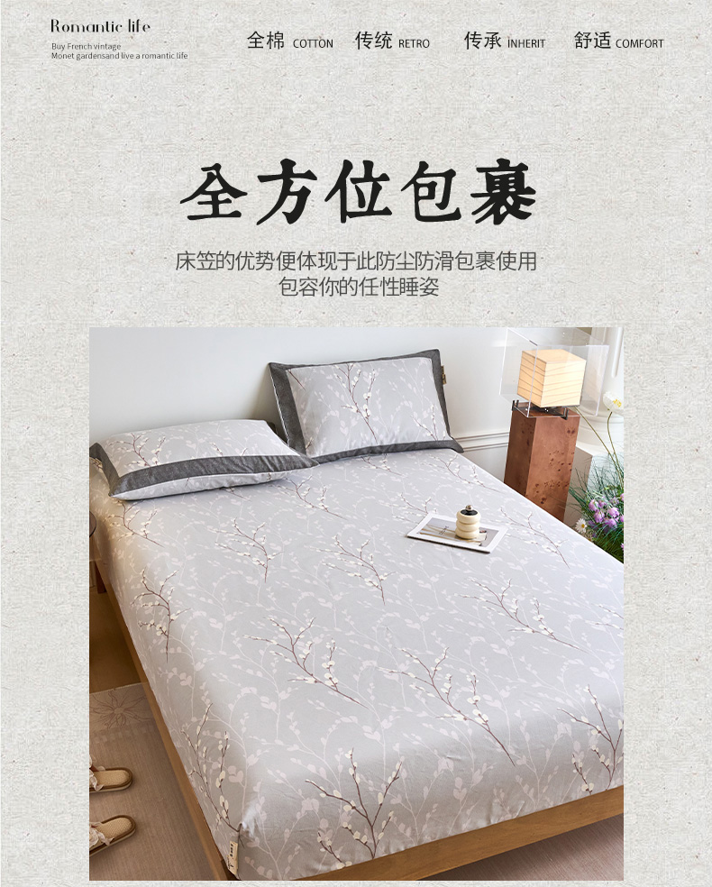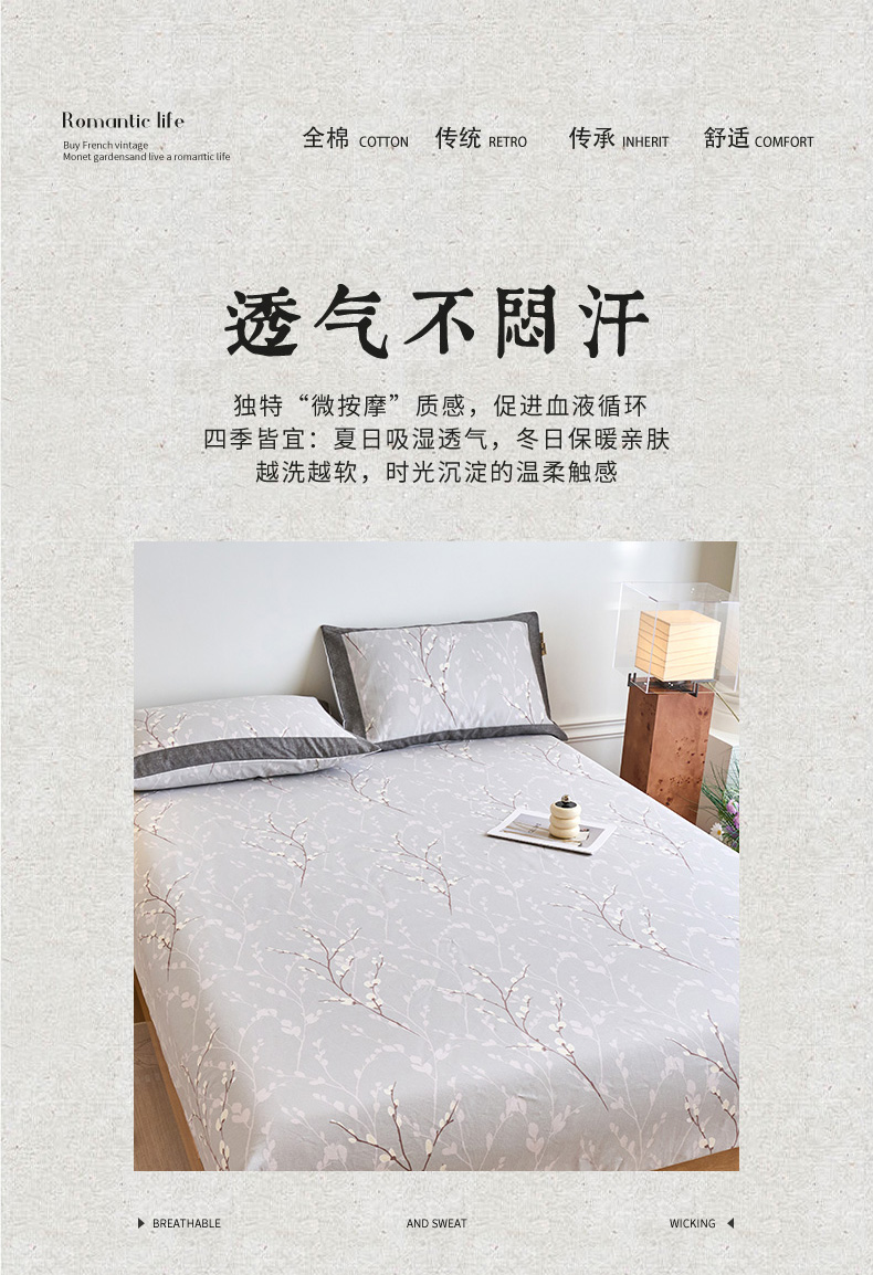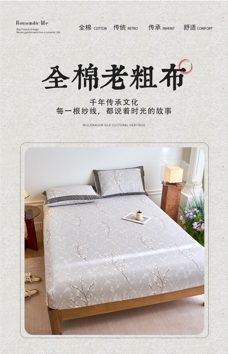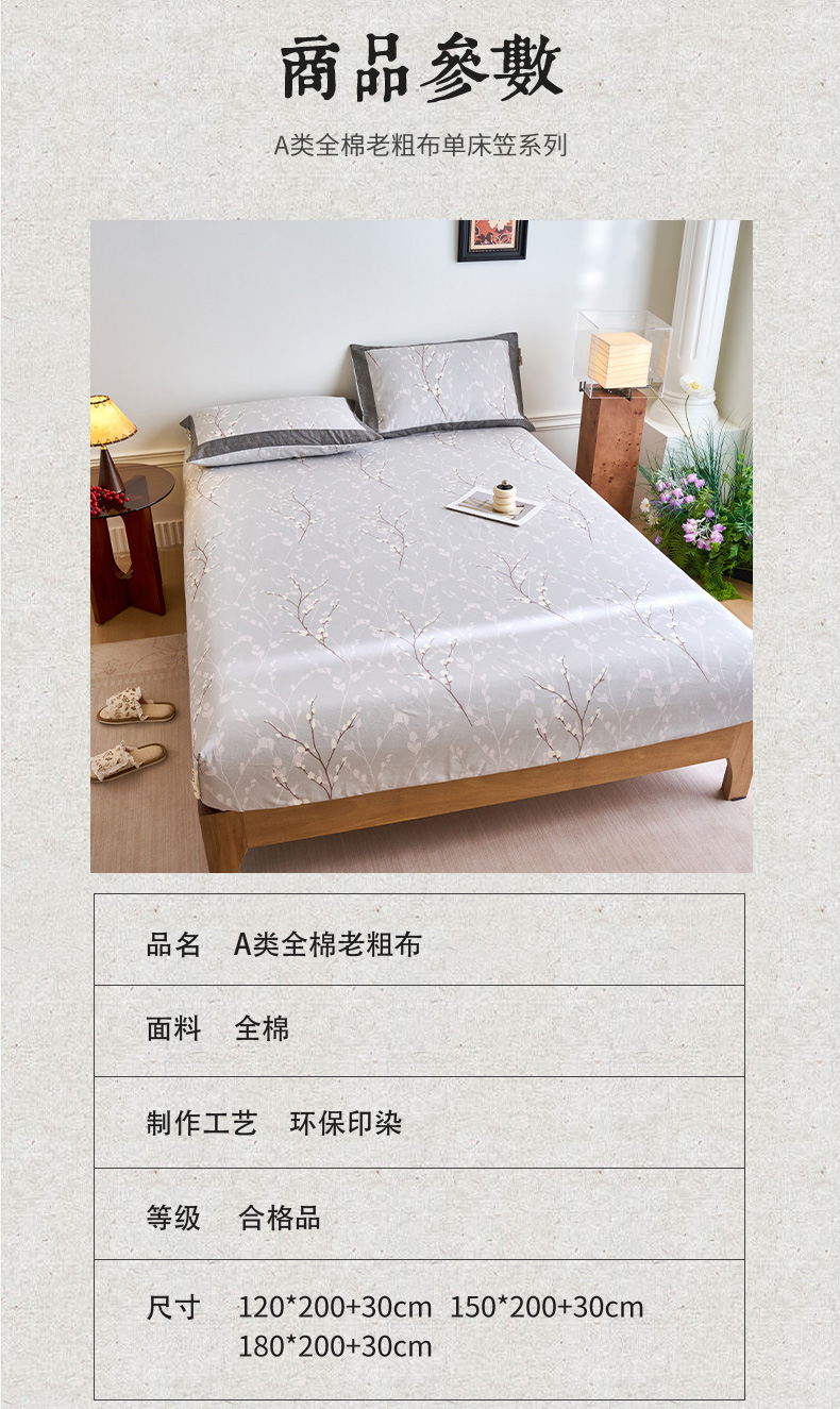 • 91家纺网 家纺一手货源 找家纺 春皖家纺 2026新款全棉老粗布席子凉席工艺款单床笠床笠单件 枝丫