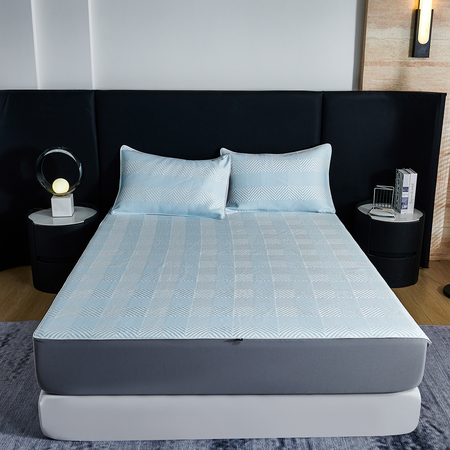 (总)CINNY馨宜 2026新款锦纶瞬间凉感凉席床笠 凉感丝凉感床笠 凉感席凉席三件套,蓝色,绿色