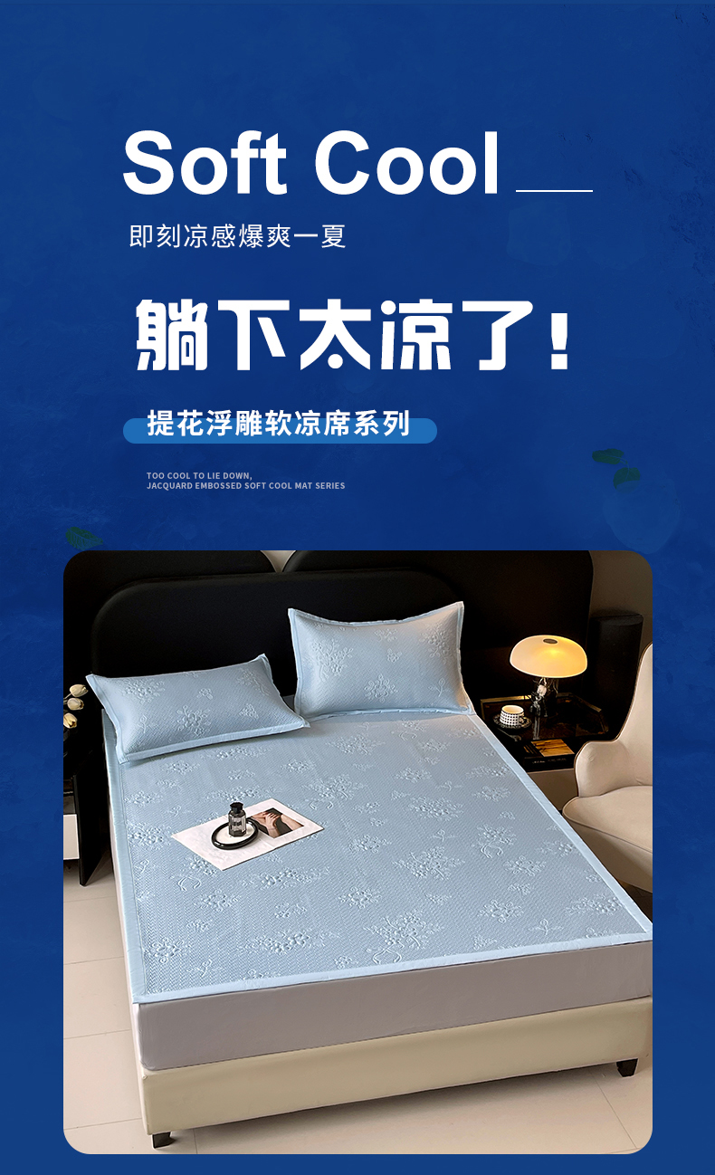 春皖家纺 2026新款提花浮雕冰豆豆凉感席三件套-浅夏花结 浅夏花结-蓝