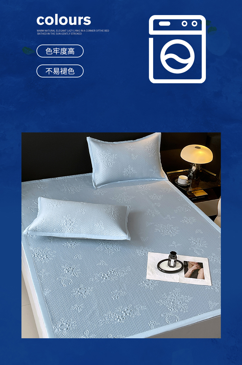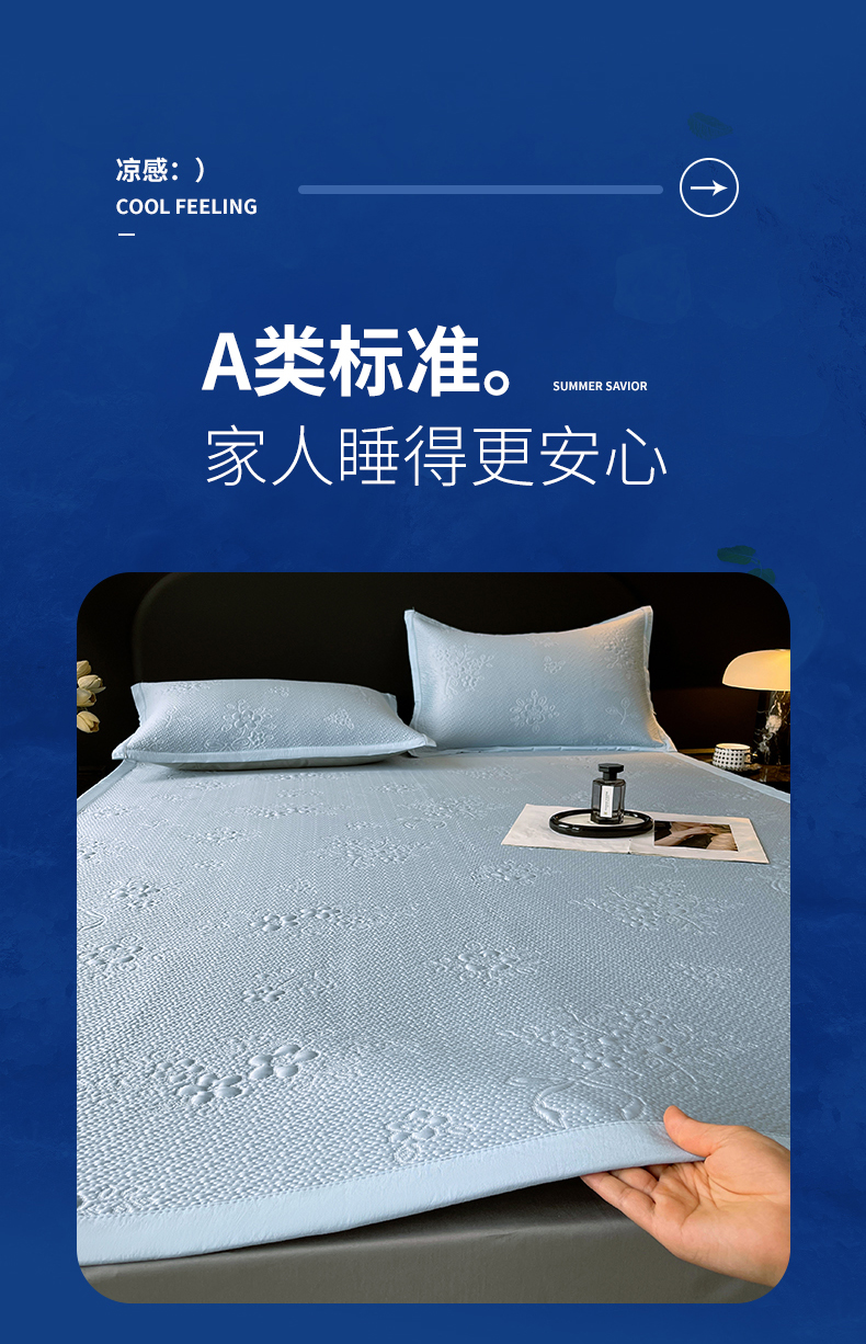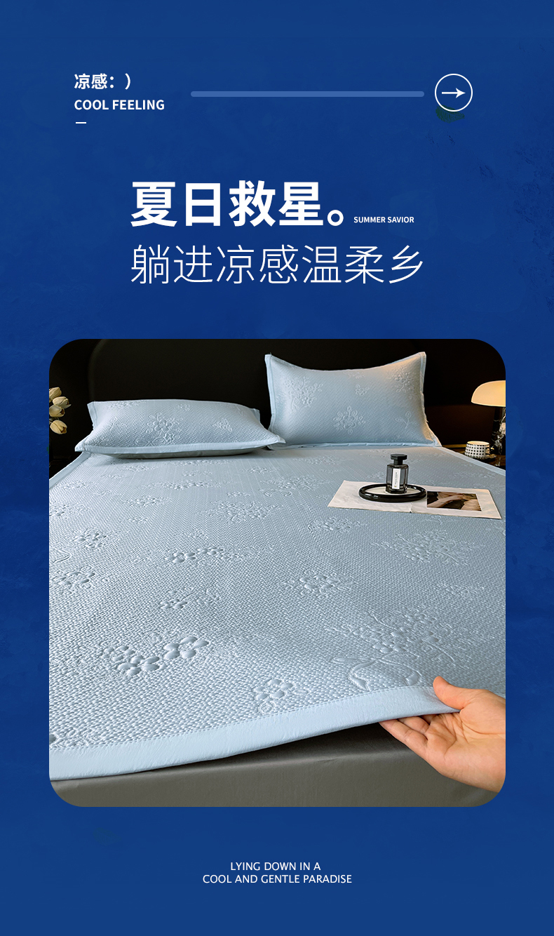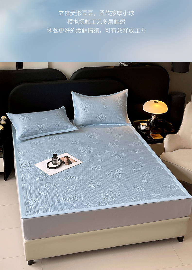 商品名称:春皖家纺 2026新款提花浮雕冰豆豆凉感席三件套-浅夏花结 浅夏花结-蓝