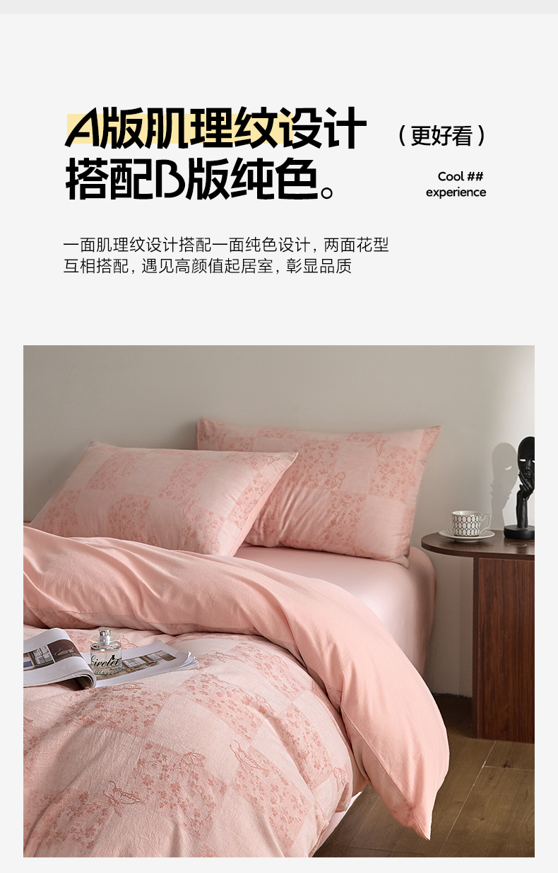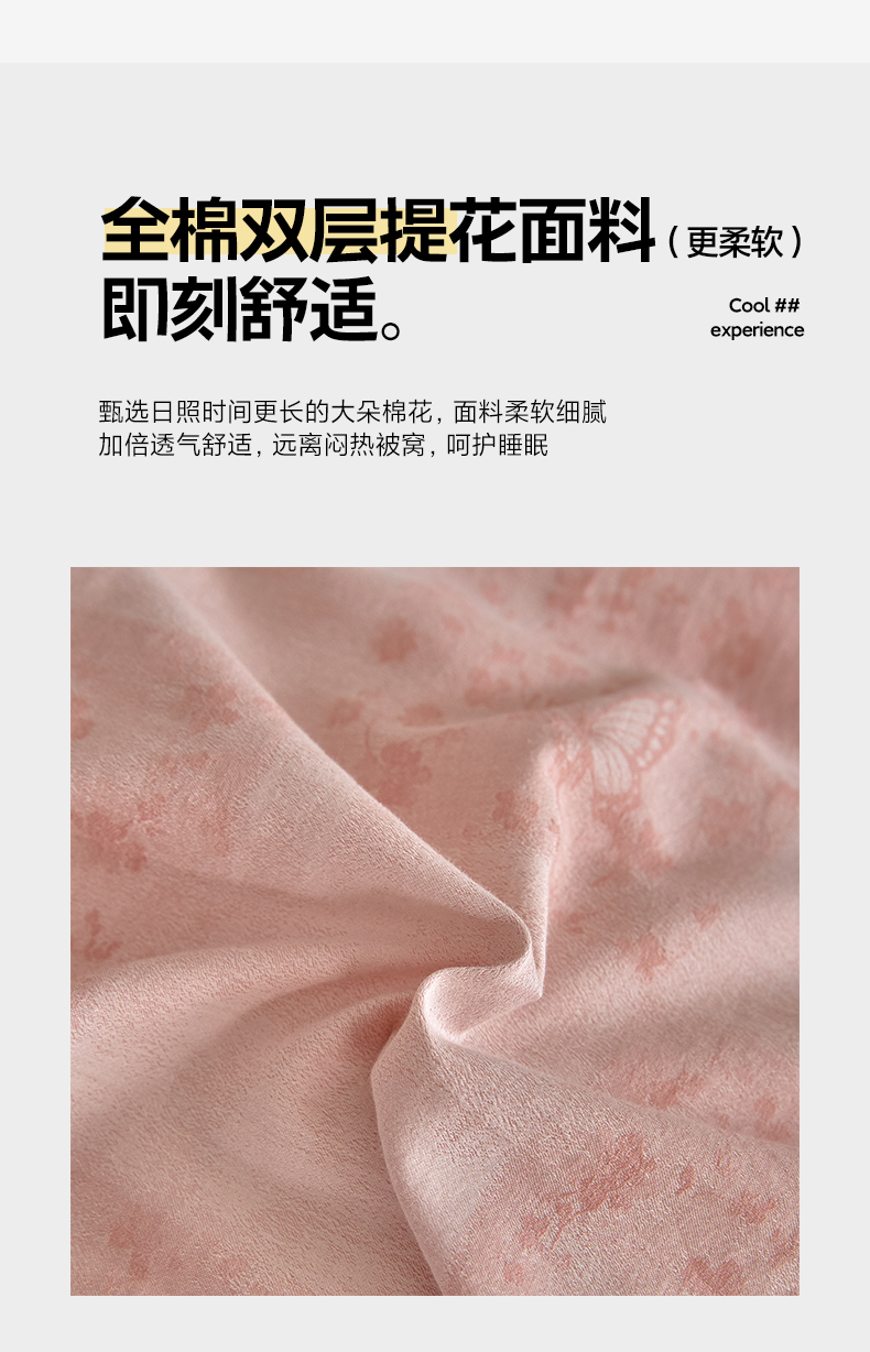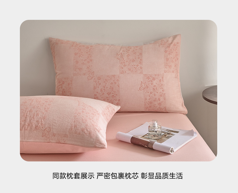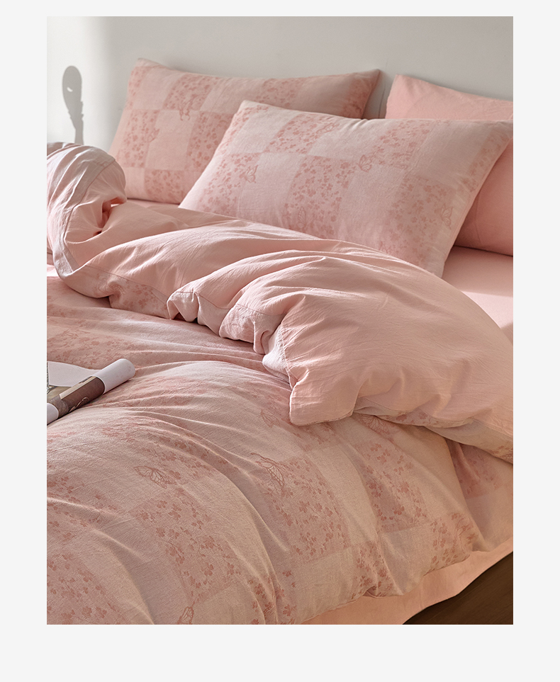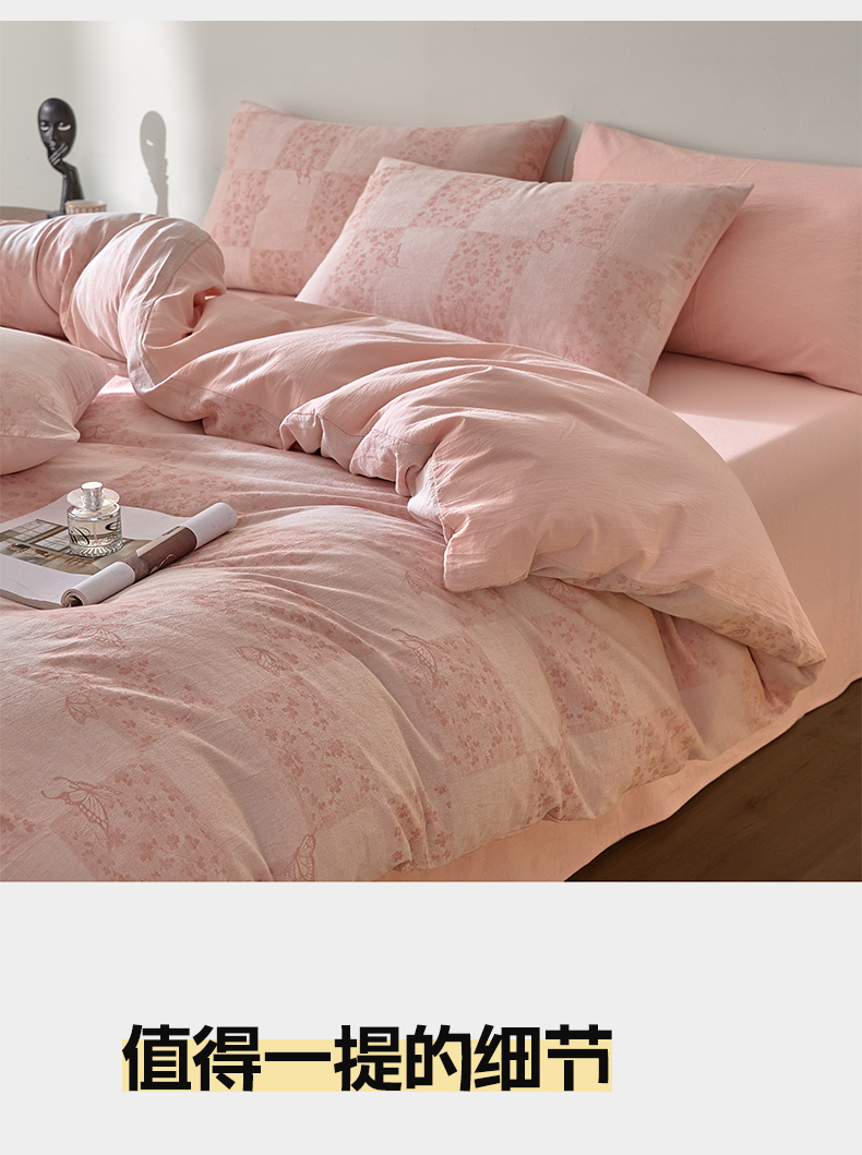 商品名称:如一 2026新款A类色织提花全棉双层纱水洗棉四件套 蝶漫粉